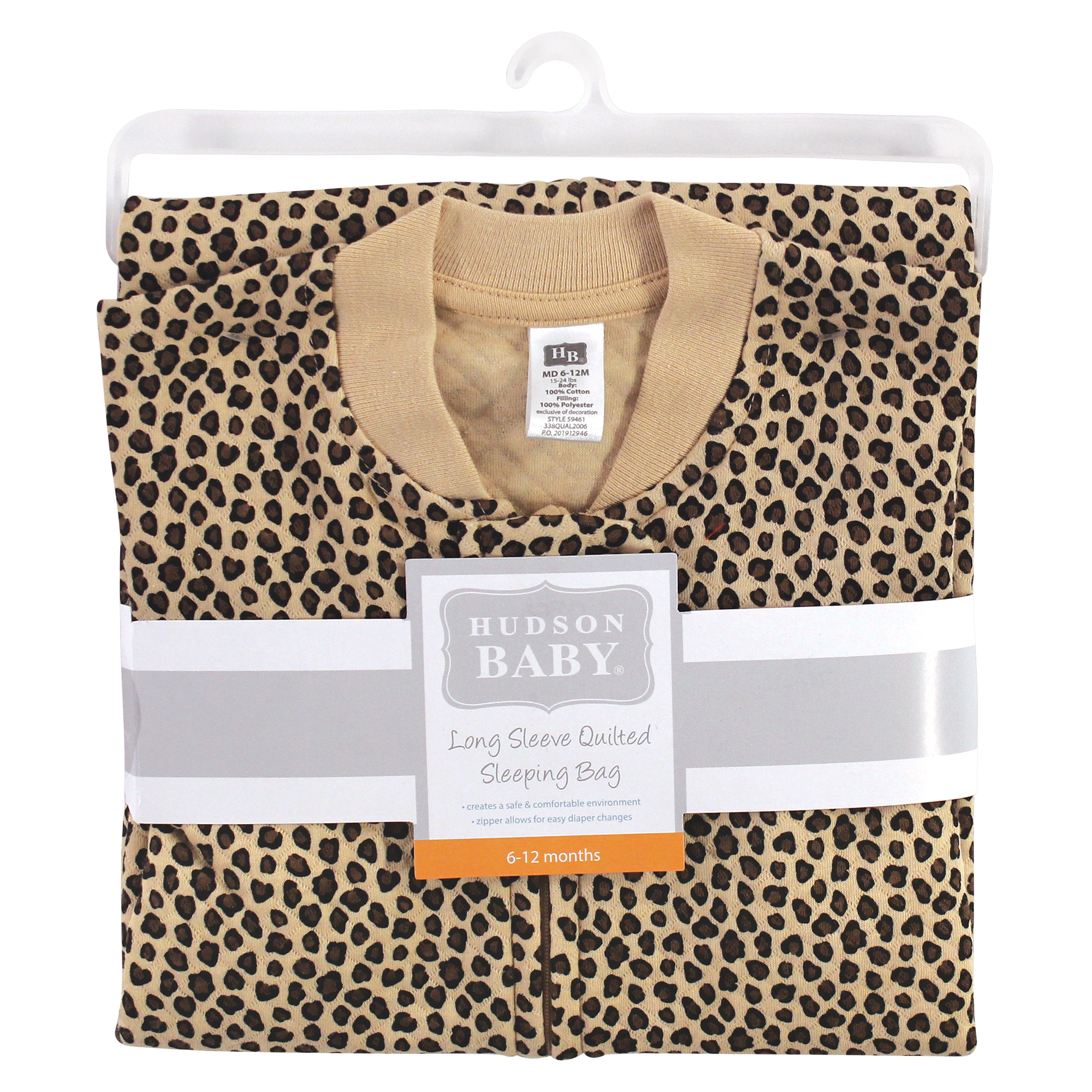 Hudson Baby Premium Quilted Long Sleeve Sleeping Bag and Wearable Blanket, Leopard