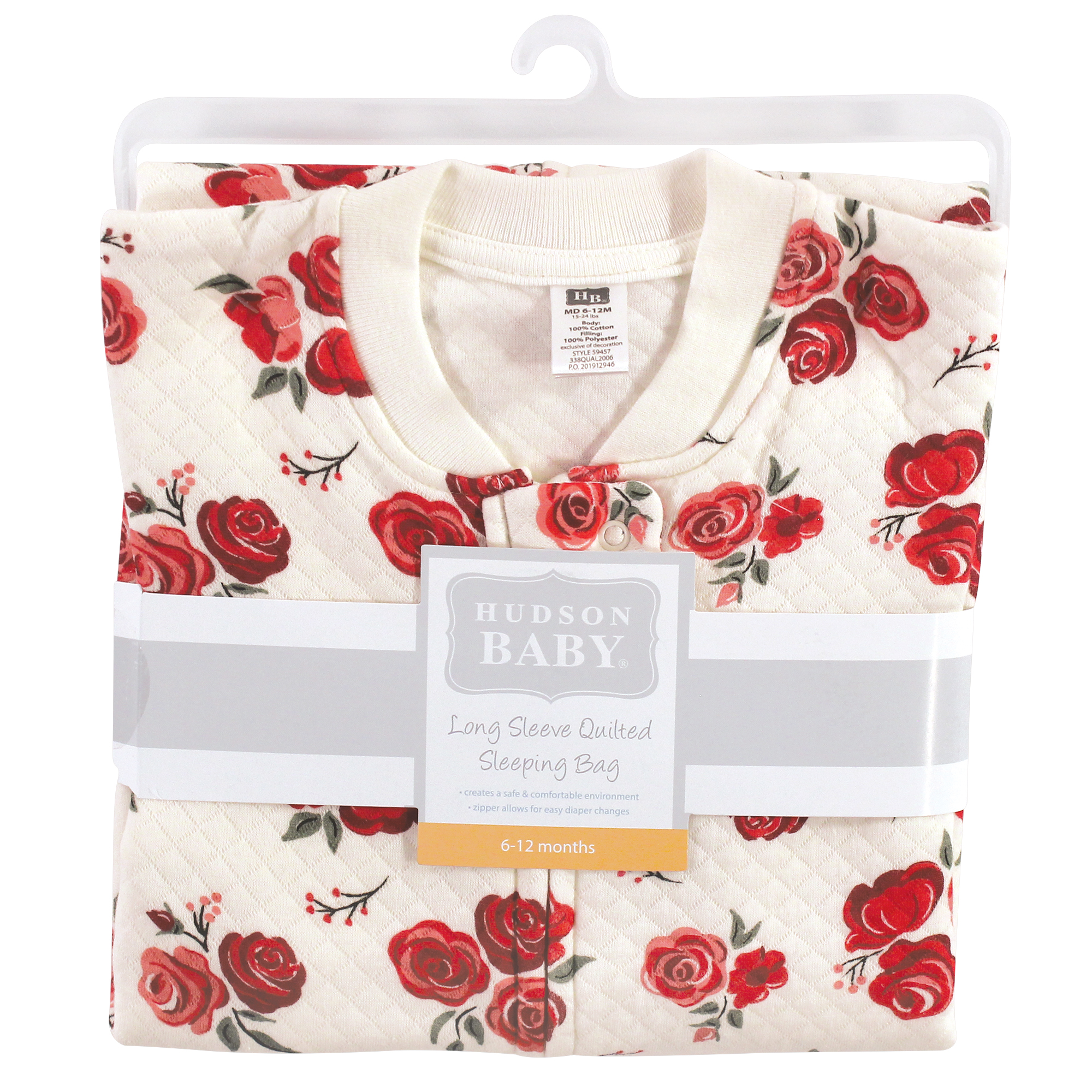 Hudson Baby Premium Quilted Long Sleeve Sleeping Bag and Wearable Blanket, Red Rose