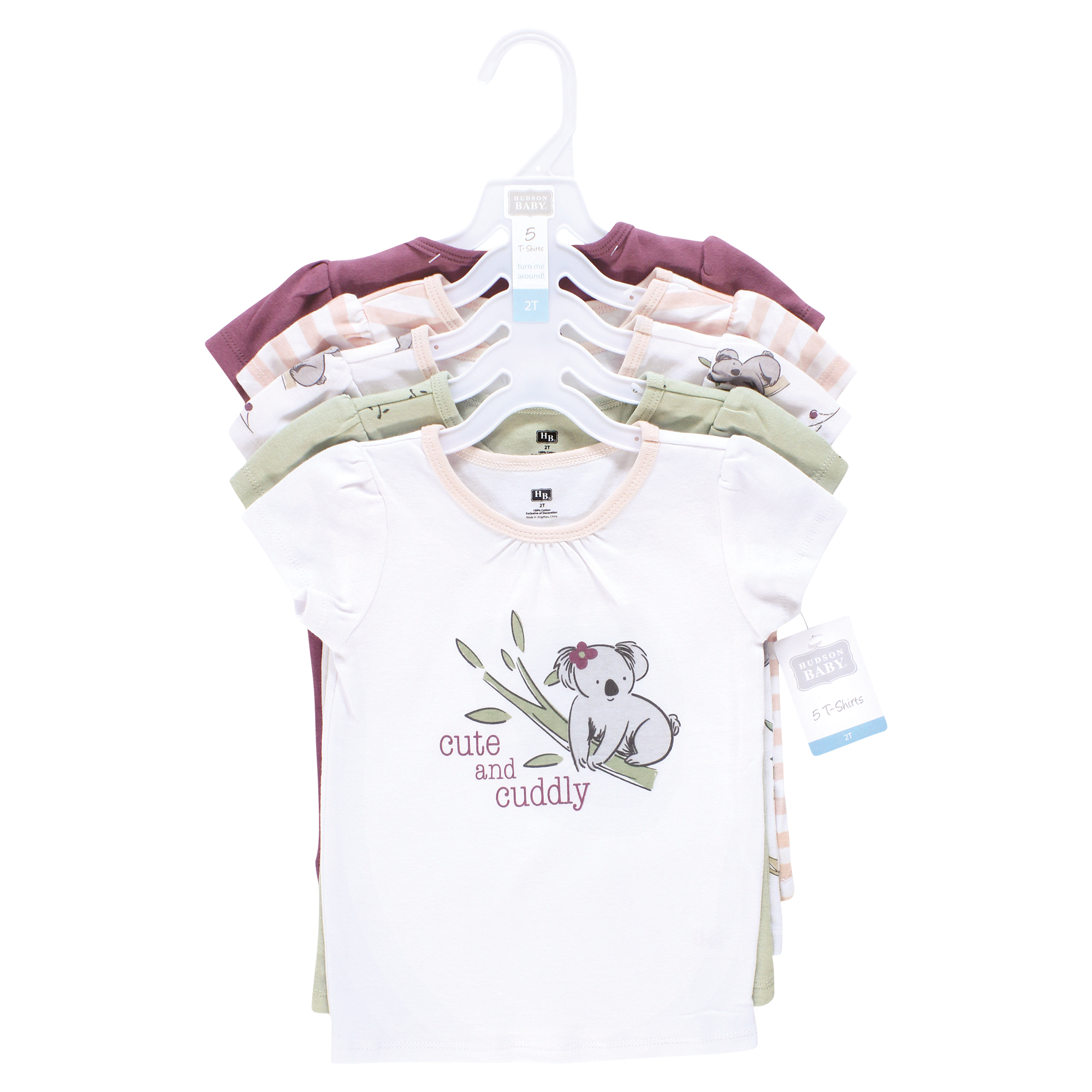 Hudson Baby t-shirts are great everyday tops for your little ones. Featuring fun prints and patterns, our t-shirts are made with comfortable, soft cotton poly fabric that feels wonderful on children's skin. Our sets include five t-shirts so you can mix and match with your child's wardrobe for fun everyday outfits.