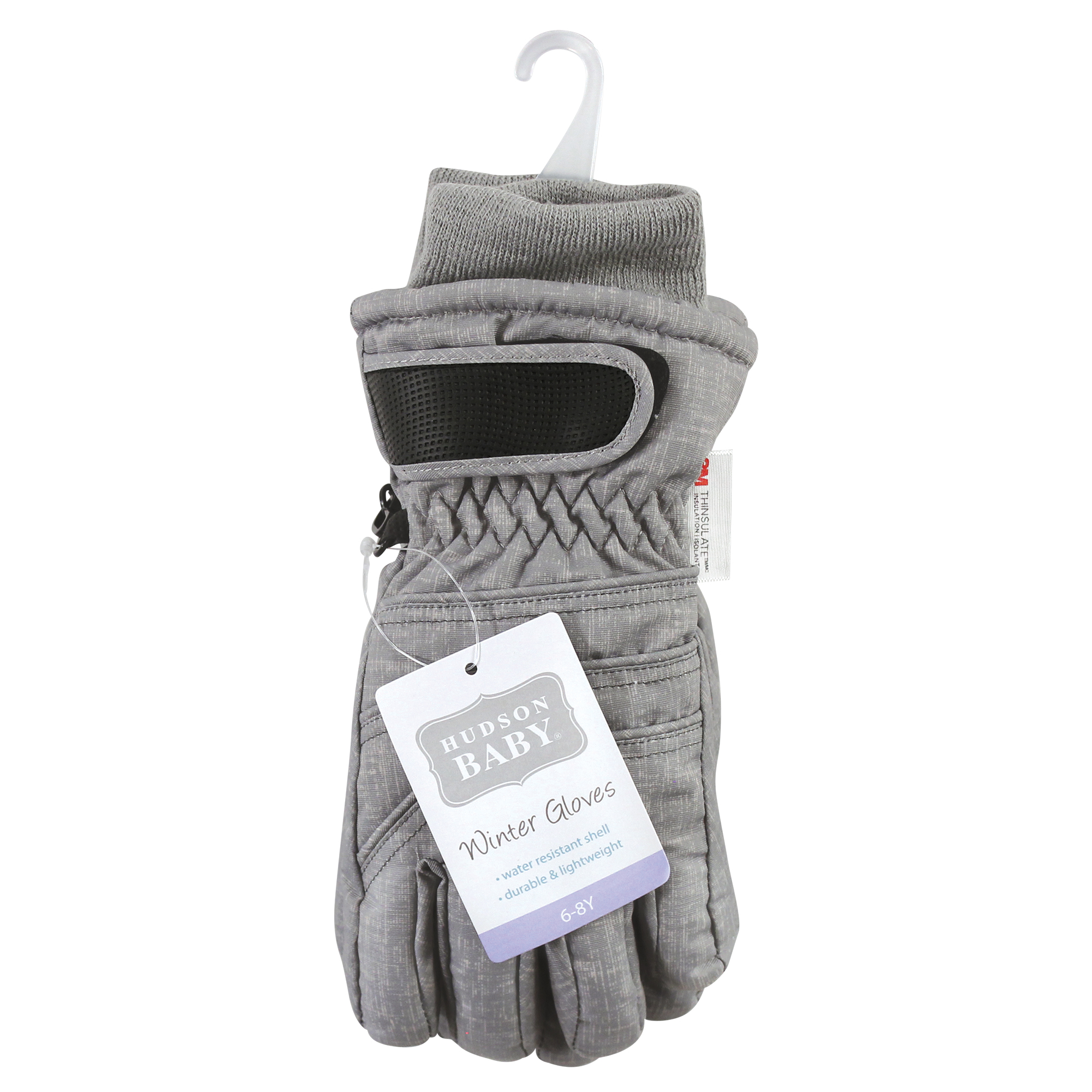 Hudson Baby gloves are a must-have for any active, winter venture. These wind and water-resistant Gloves will keep you warm and comfortable, making your next trip outdoors thoroughly enjoyable. Our gloves offer a maximum degree of durability and protection. Manufacturer recommended sizing up for a more comfortable fit. Our superior soft 3M Thinsulate lining offers incredible warmth for the coldest days. Featuring a gripper palm and fingers with adjustable Velcro strap and stretch ribbed cuff offer added protection from the elements and to keep gloves secure. The gloves are machine washable, perfect for a quick and easy cleaning after outdoor activities.