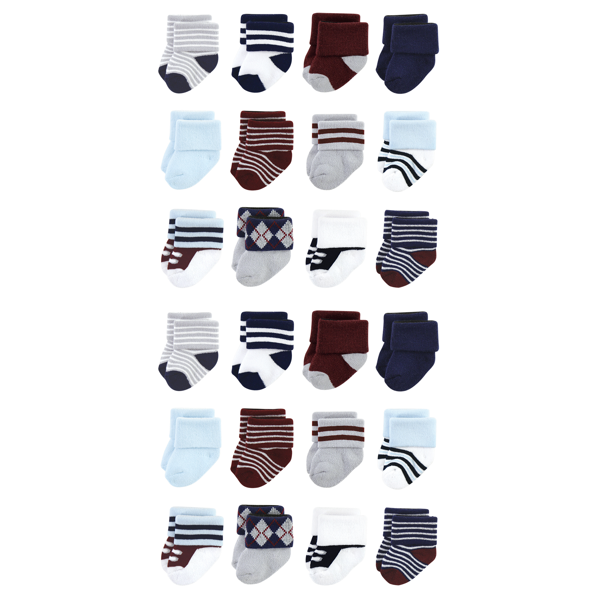 Little Treasure terry socks are soft, snuggly, warm socks to keep baby's feet feeling cozy and comfortable. The fold-over cuff style make it easier to keep baby's socks on their feet. Our super soft cotton blend socks are gentle and are made with thick, cushiony fabric to keep baby's feet warm and snug.