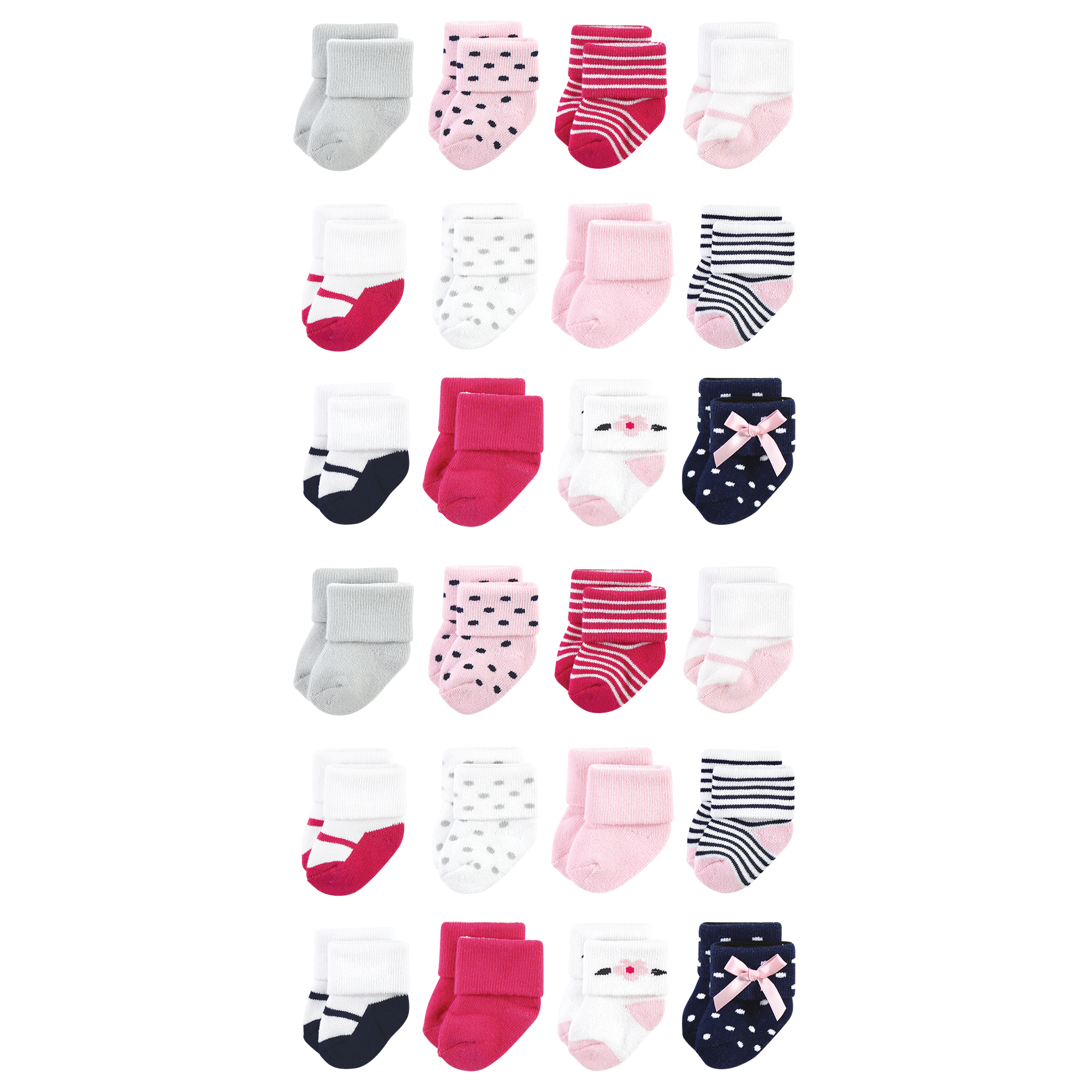 Little Treasure terry socks are soft, snuggly, warm socks to keep baby's feet feeling cozy and comfortable. The fold-over cuff style make it easier to keep baby's socks on their feet. Our super soft cotton blend socks are gentle and are made with thick, cushiony fabric to keep baby's feet warm and snug.