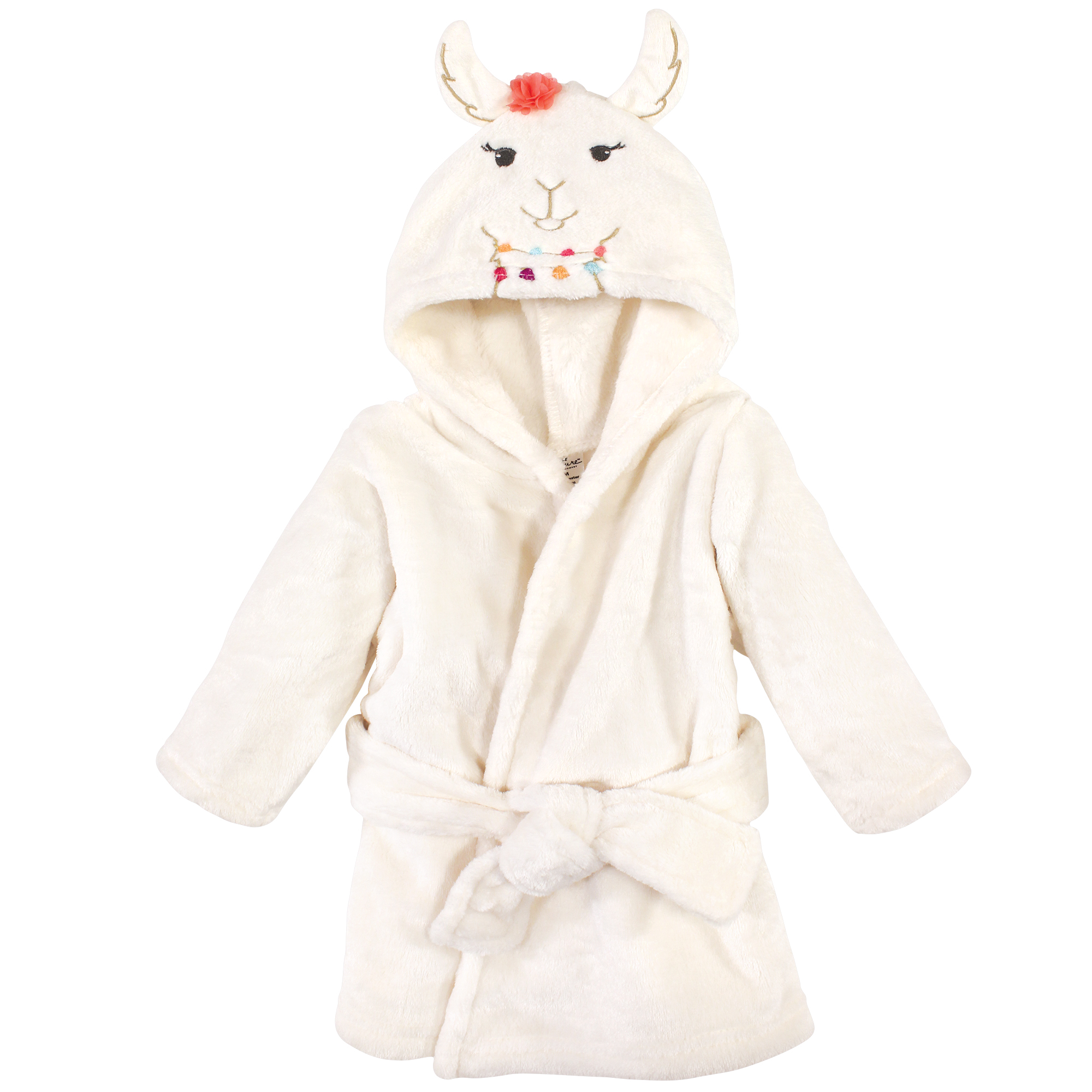 Little Treasure plush bathrobe offers a cozy way to warm up from bath time or around the house. Hooded bathrobe offers baby extra warmth. Made of super soft plush fabric, this robe is so warm and cozy. With cute animal character, your babe will love dressing up in this. Added waist tie to keep robe closed. Fits 0-9 Months