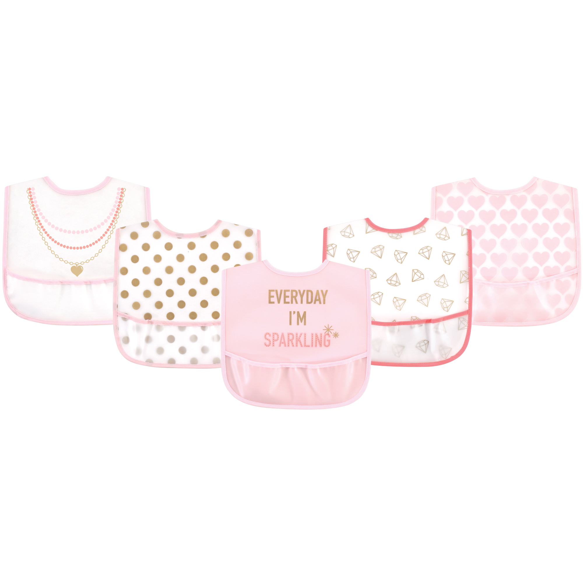 Little Treasure waterproof bibs with pocket are perfect for messy meal times. These bibs are no hassle, easy to clean. With crumb and food catching pocket, there will be less spills to clean up! Bibs closure is hook and loop. Wipe clean with a sponge or washcloth.