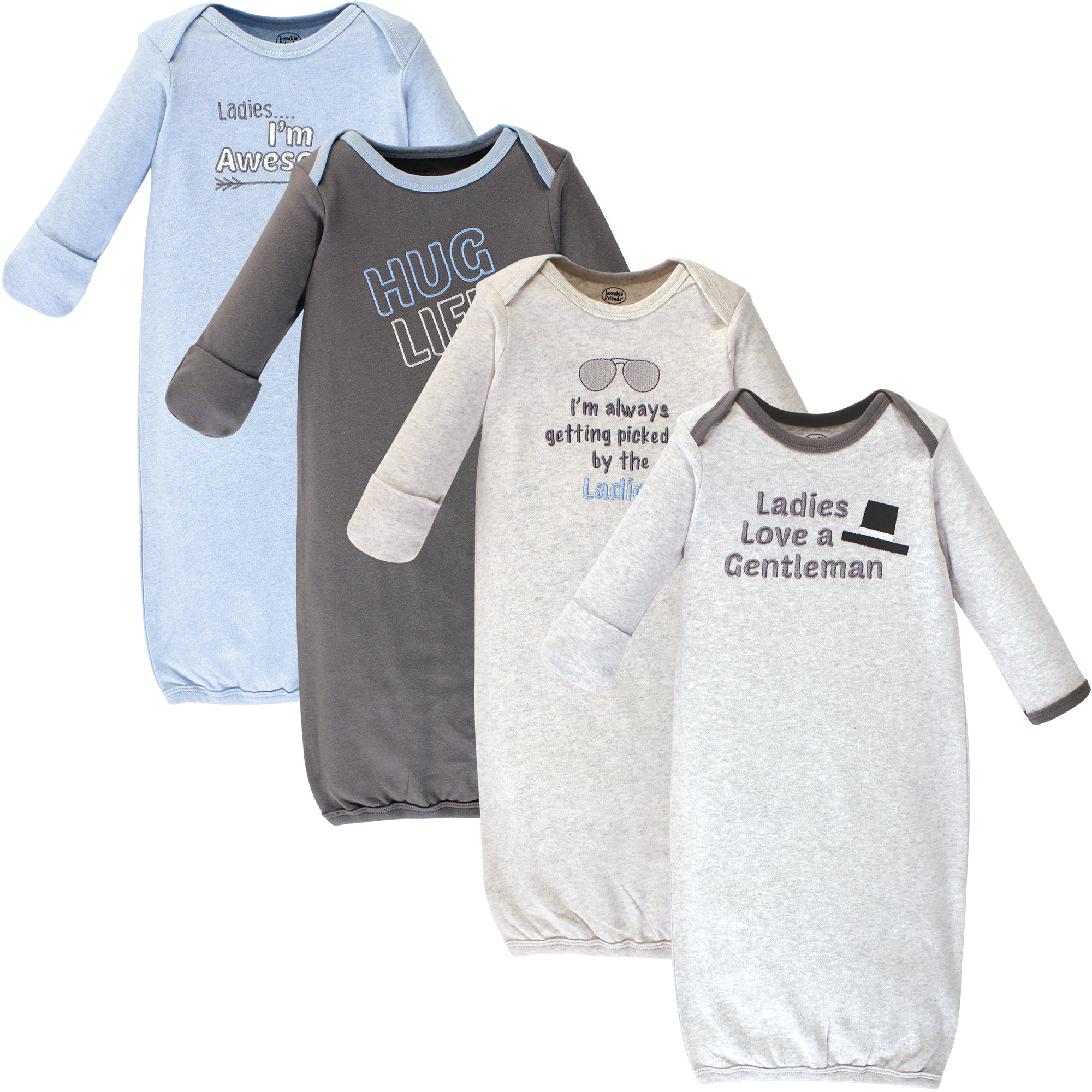 Luvable Friends cotton gowns are super comfortable and cozy and feature playful patterns for sweet dreams. An elastic band at the bottom and a lap neck make dressing and diaper changes simple.