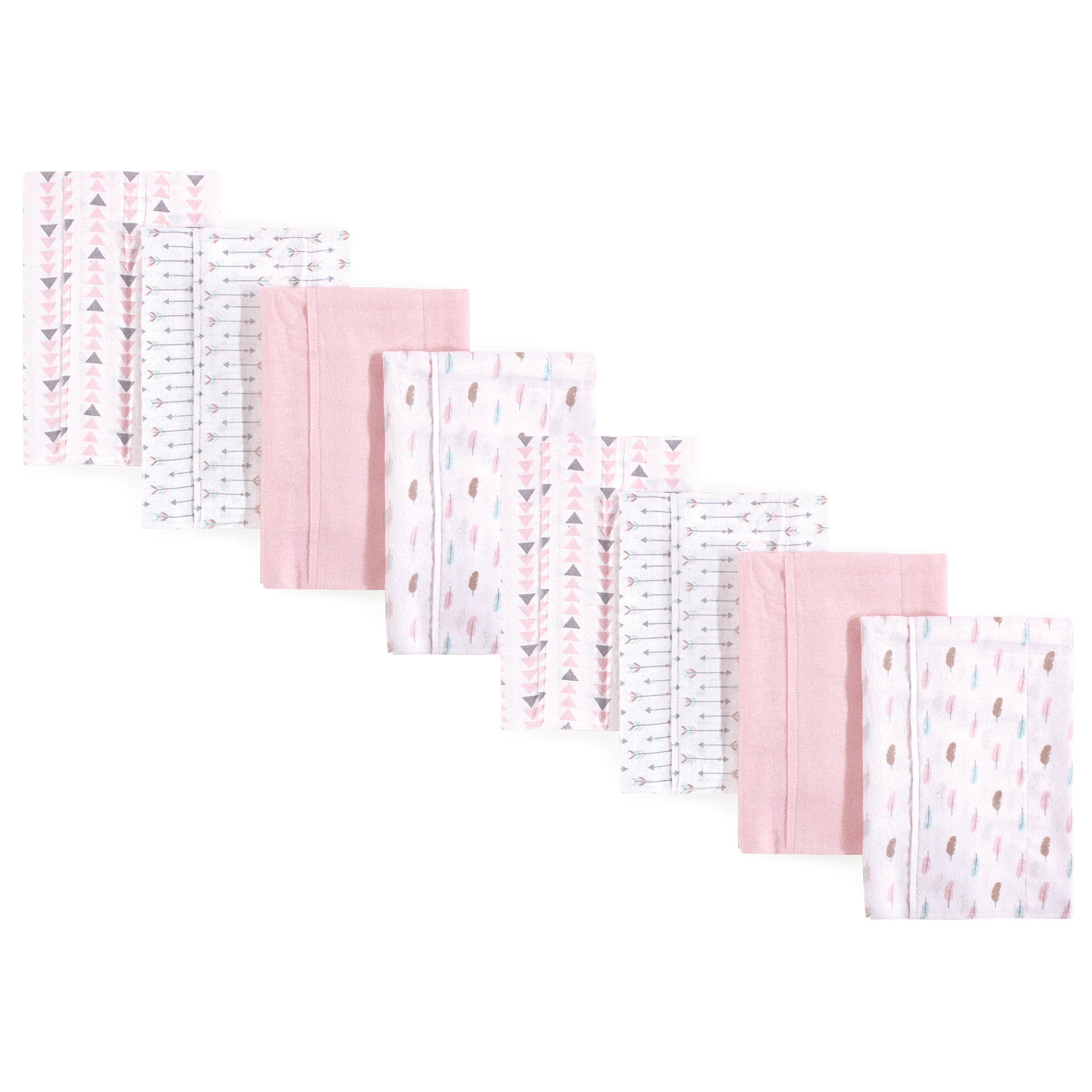 Luvable Friends Cotton Poly Flannel Burp Cloths Multipack, Girl Feathers 8-Pack