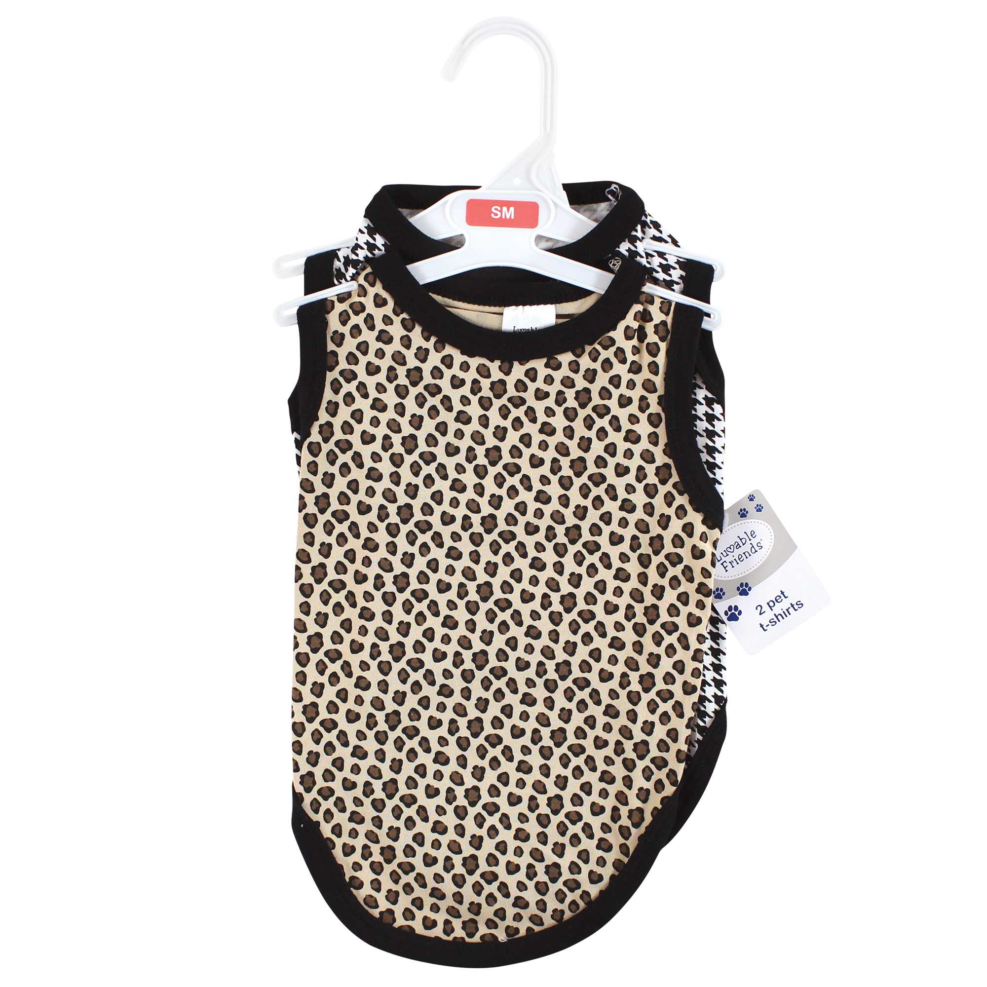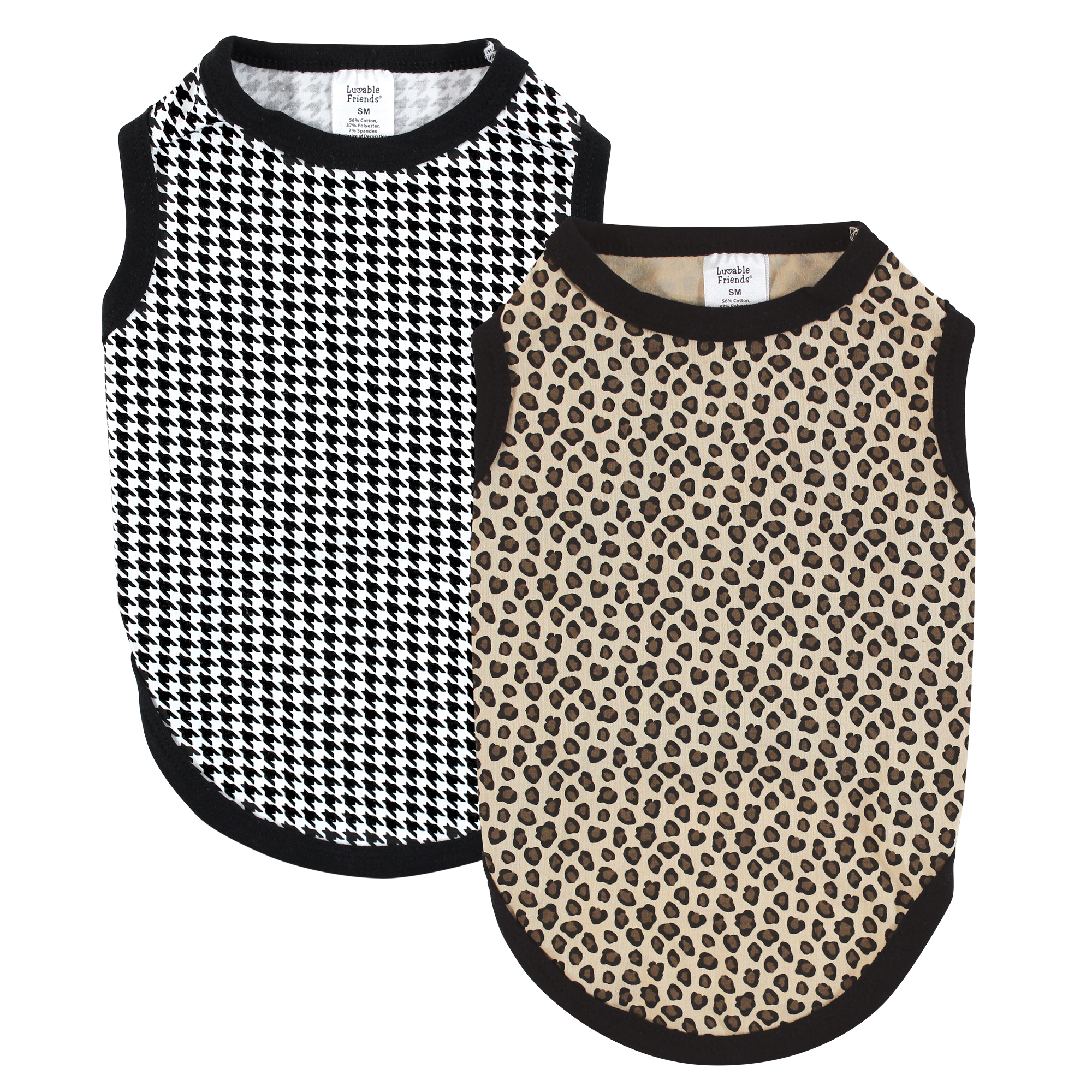 Luvable Friends Pet Dog and Cats Cotton T-Shirts 2pk, Leopard Houndstooth