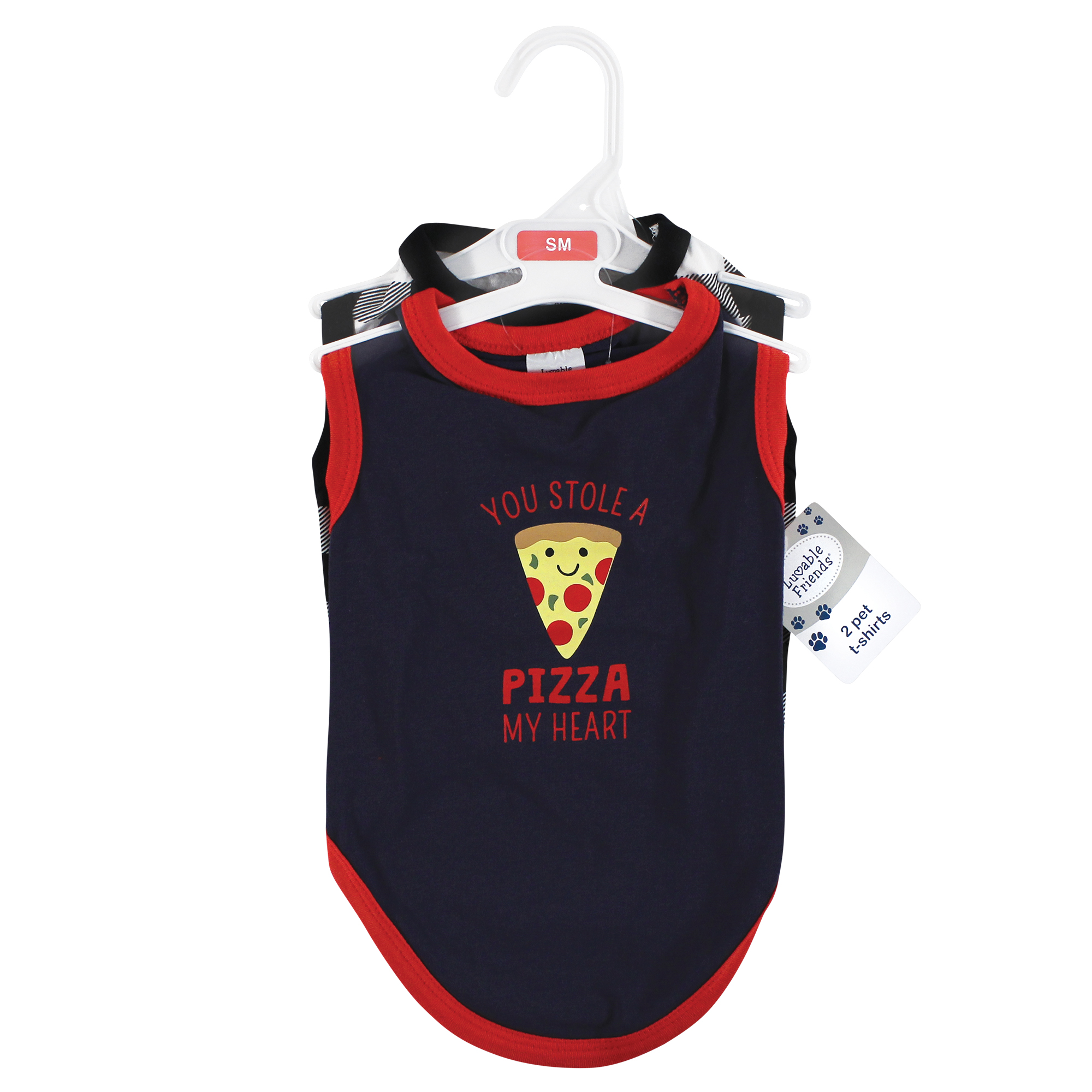 Luvable Friends Pet Dog and Cats Cotton T-Shirts 2pk, Pizza Plaid
