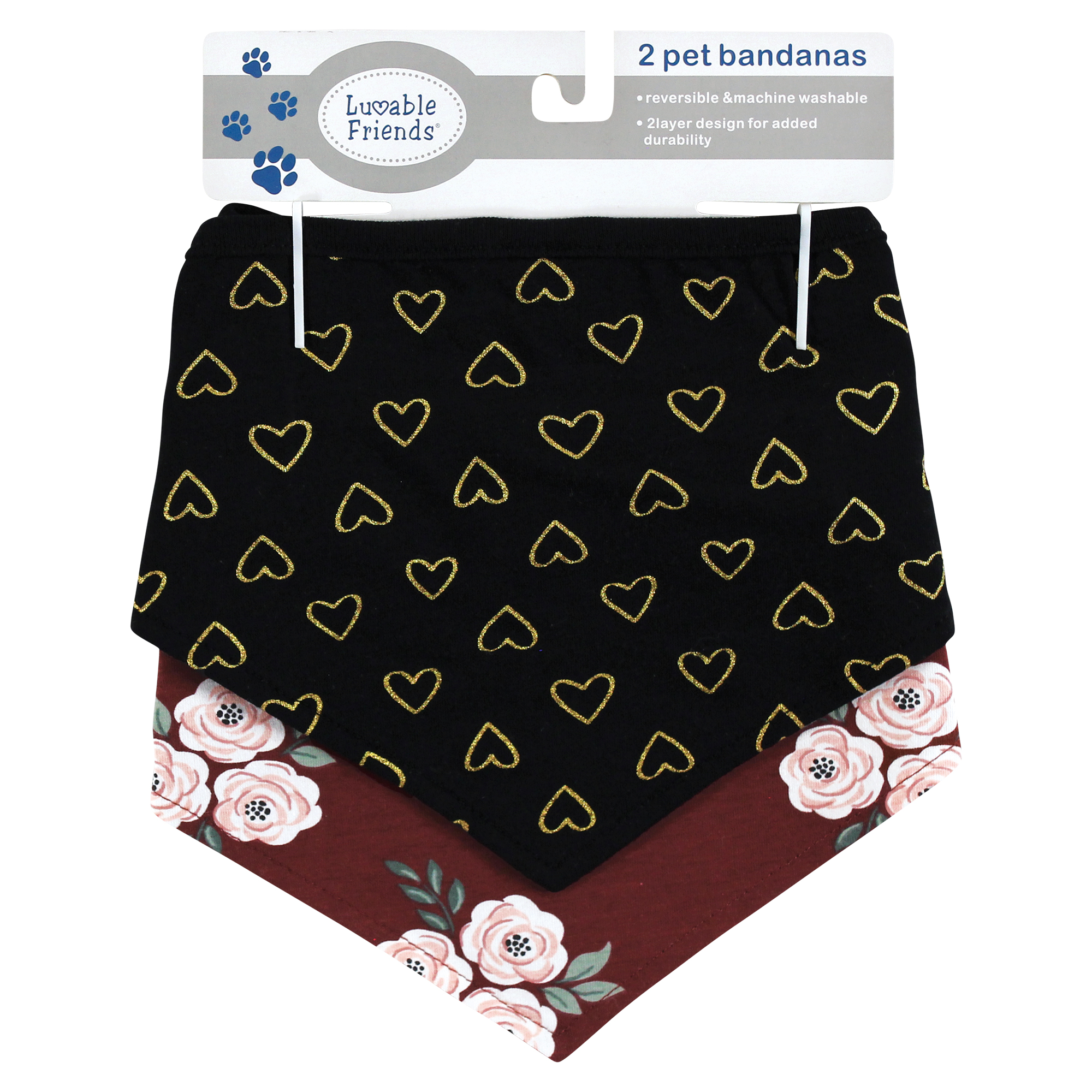 Luvable Friends Reversible Pet Dog and Cat Bandana Bibs 2pk, Burgundy Floral Hearts