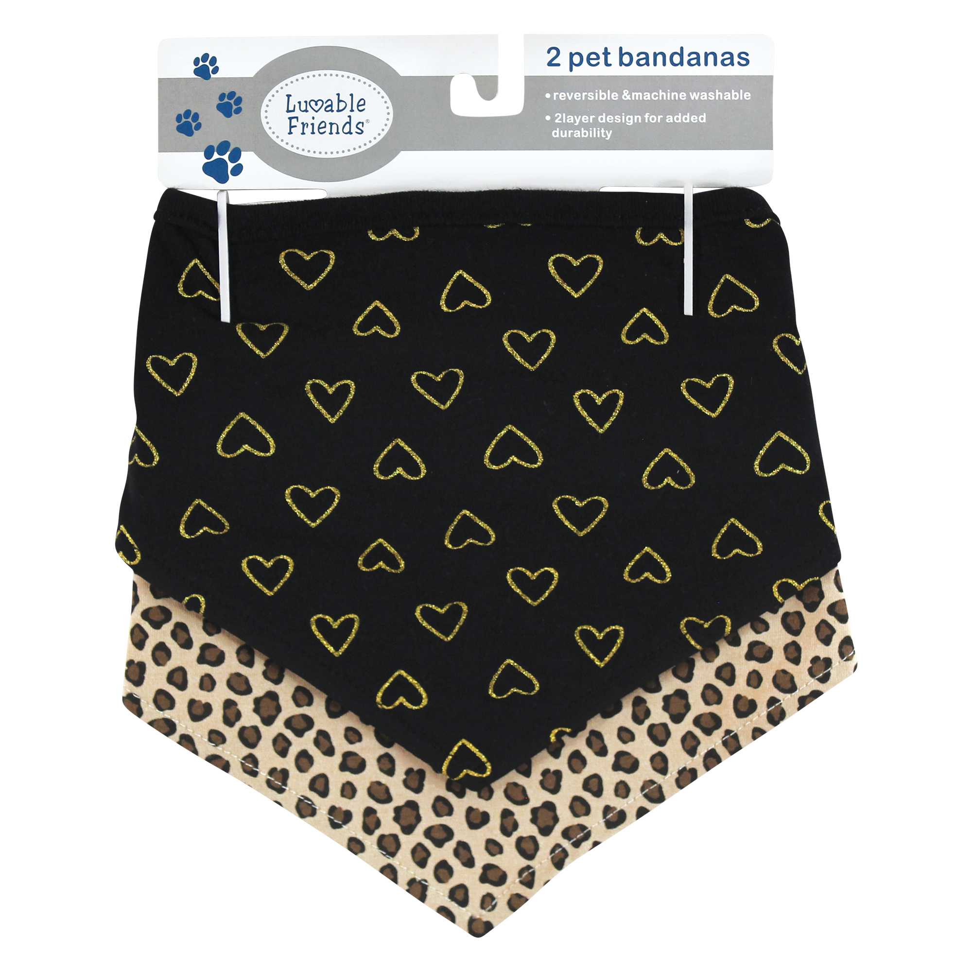 Luvable Friends Reversible Pet Dog and Cat Bandana Bibs 2pk, Leopard Hearts