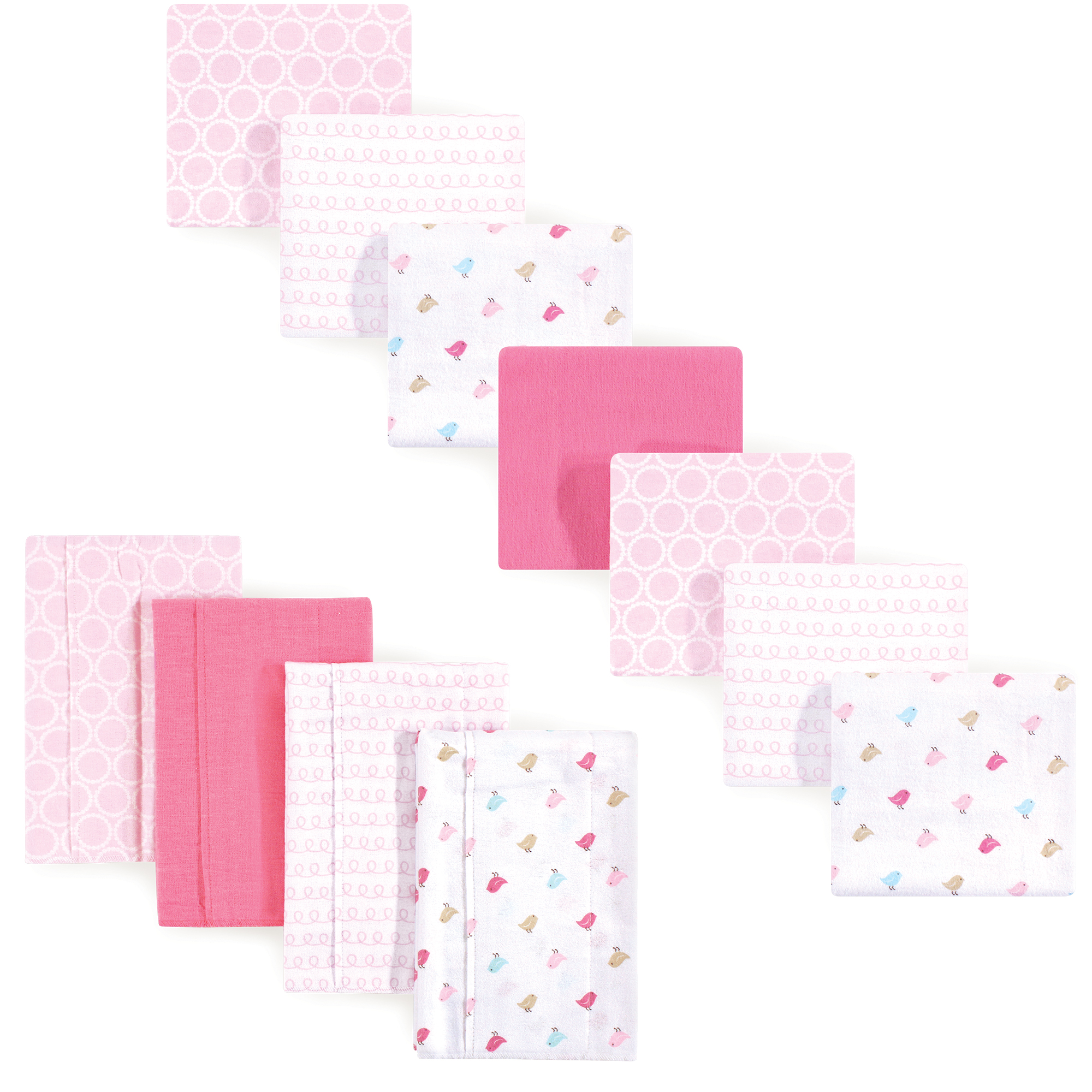 Luvable Friends Cotton Flannel Burp Cloths and Receiving Blankets, 11-Piece, Birdies