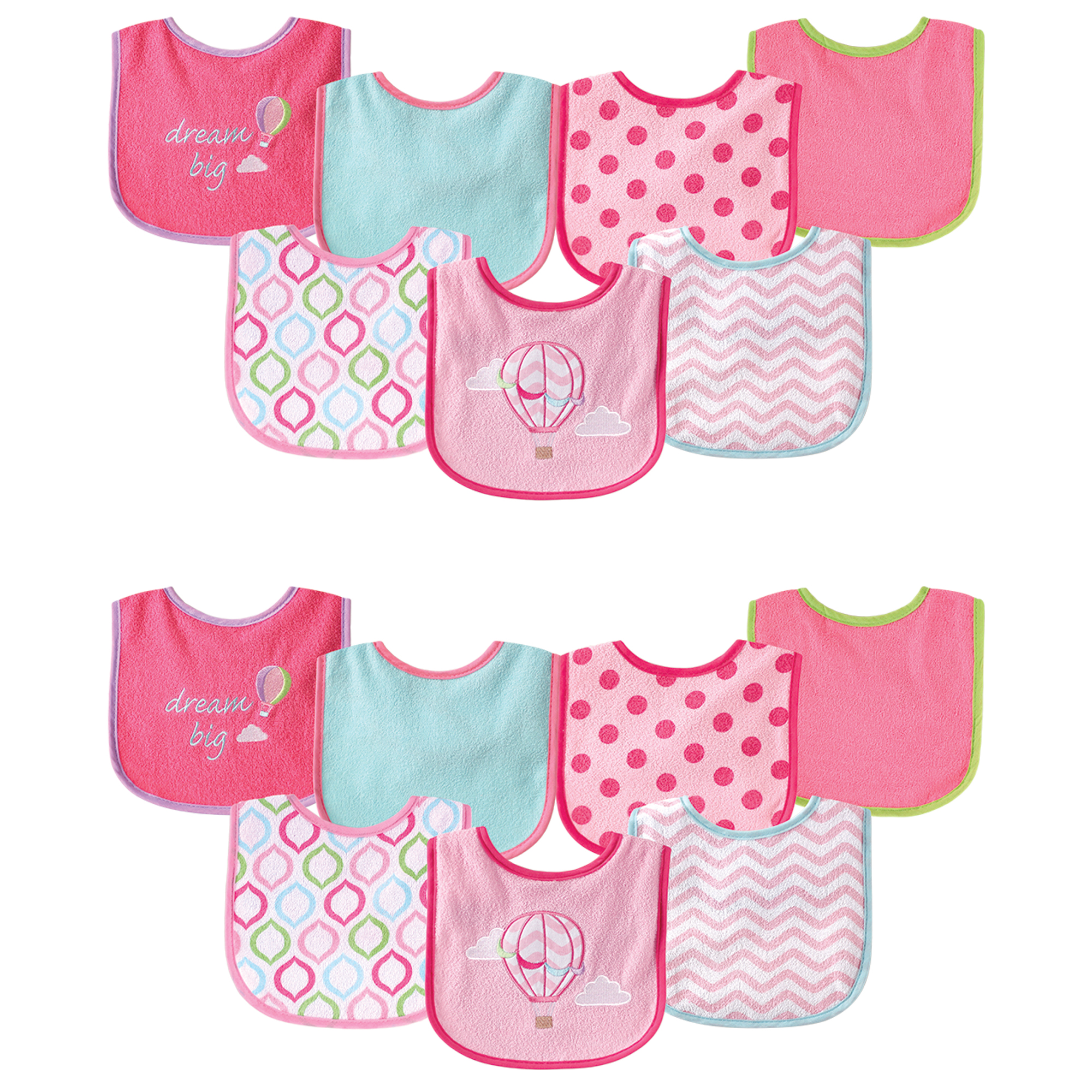 Luvable Friends Cotton Terry Drooler Bibs with PEVA Back, Pink Balloon 14-Piece
