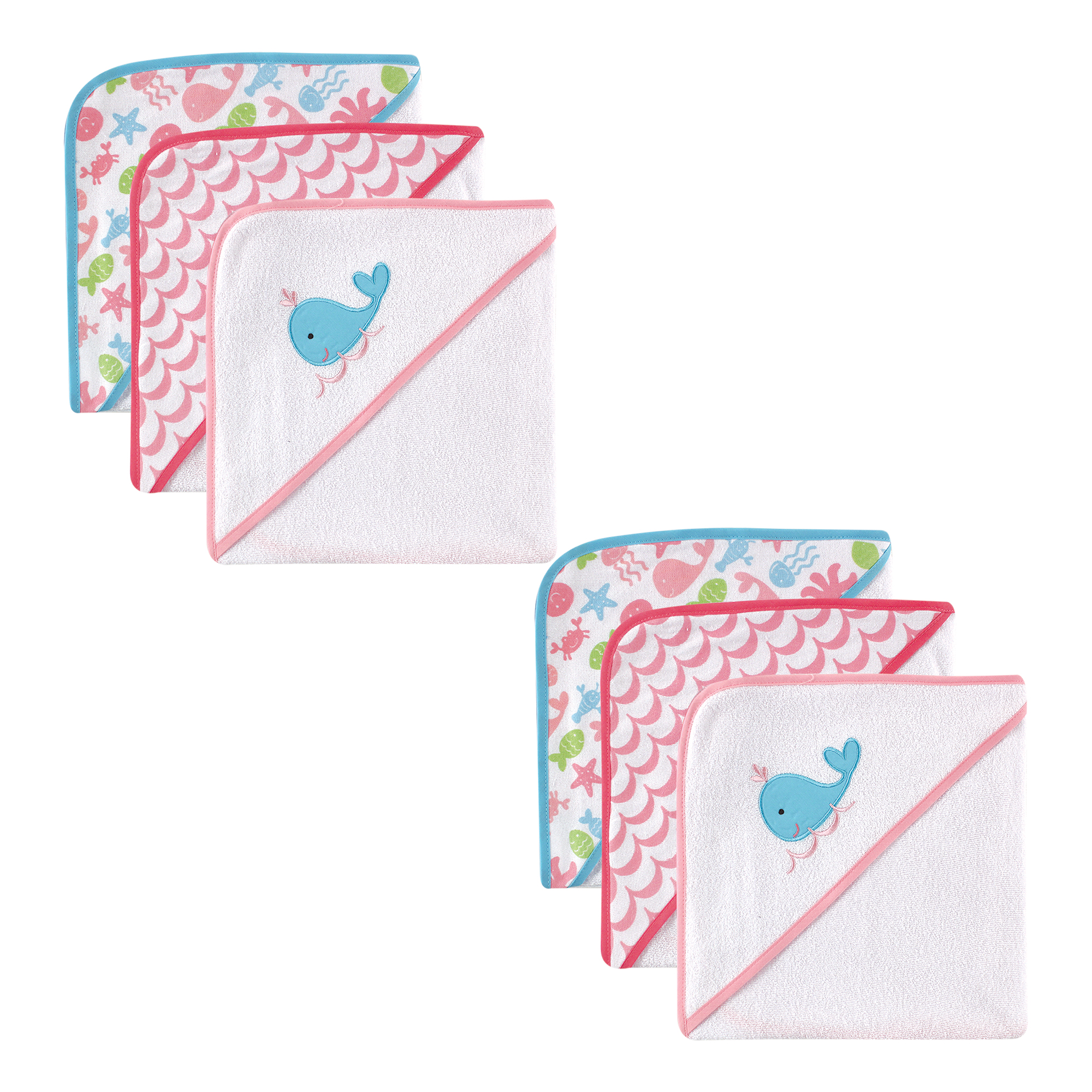 Luvable Friends Cotton Terry Hooded Towels Bundle Set, Pink 6-Piece
