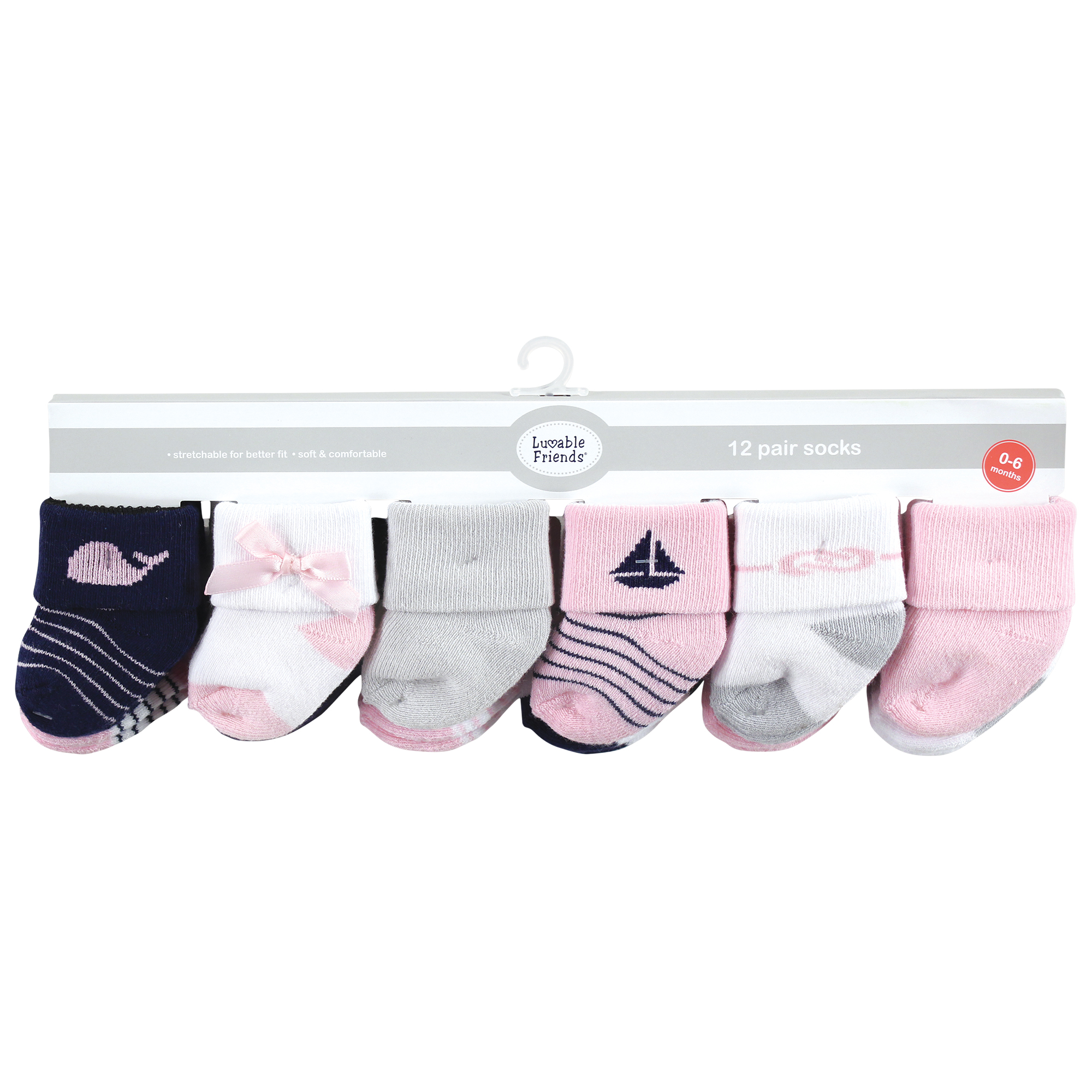 Luvable Friends Newborn and Baby Terry Socks, Sailboat 12-Pack