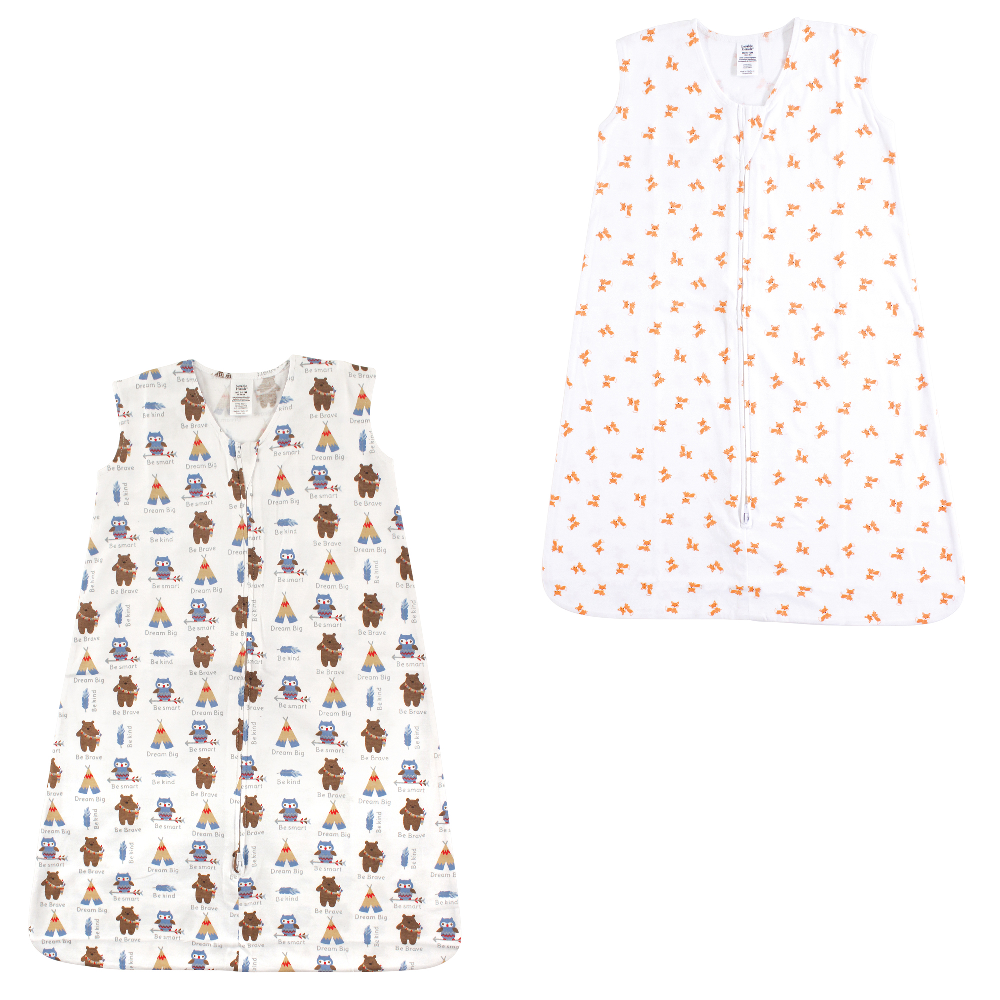 Luvable Friends Sleeveless Jersey Cotton Sleeping Bag, Sack, Blanket, Be Brave Fox Jersey 2-Pack