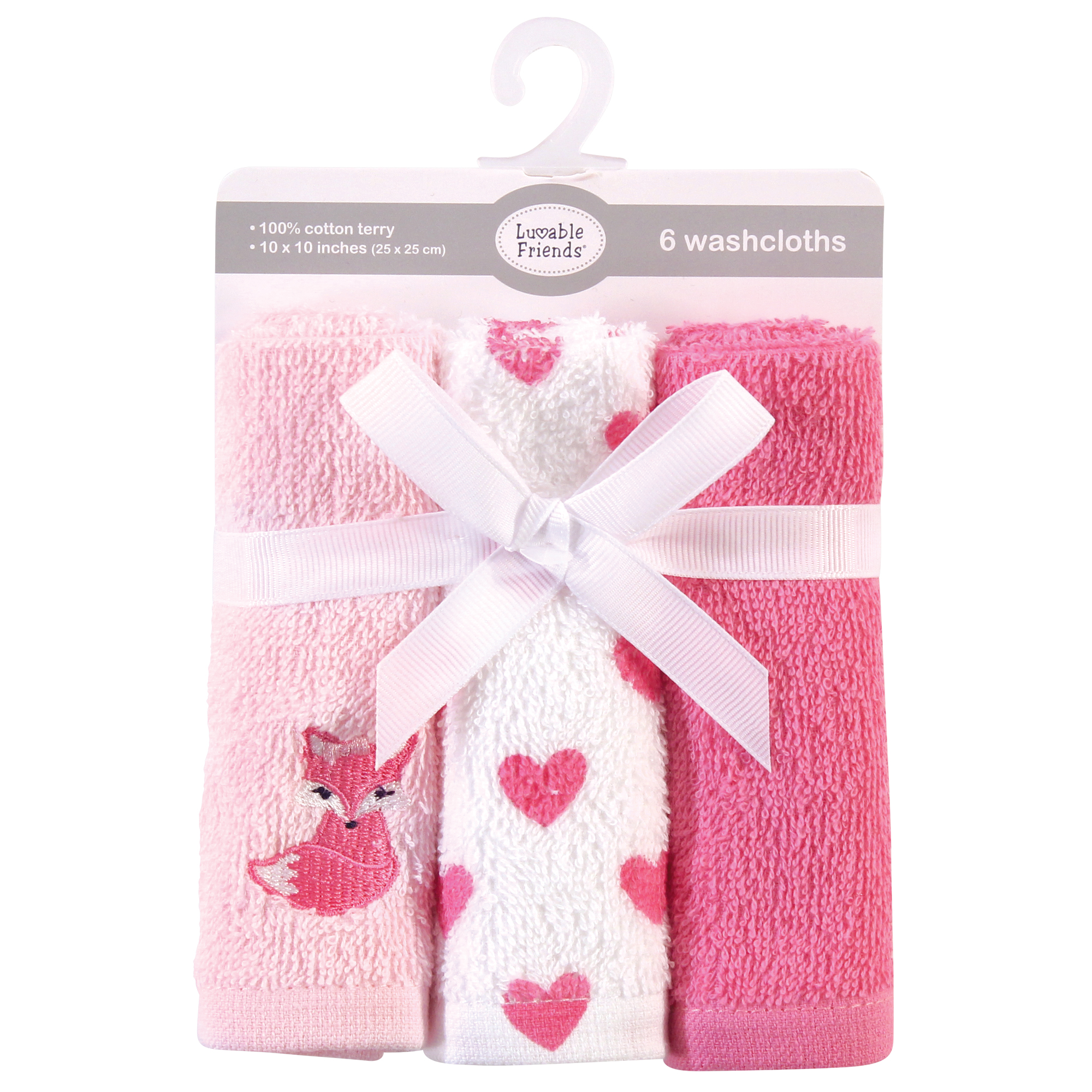 Luvable Friends Super Soft Cotton Washcloths, Fox And Hearts