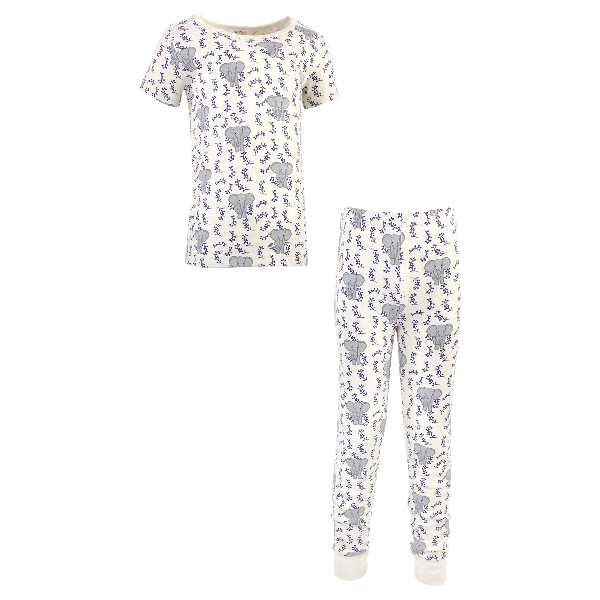 Touched by Nature Organic Cotton Tight-Fit Pajama Set, Blue Elephant