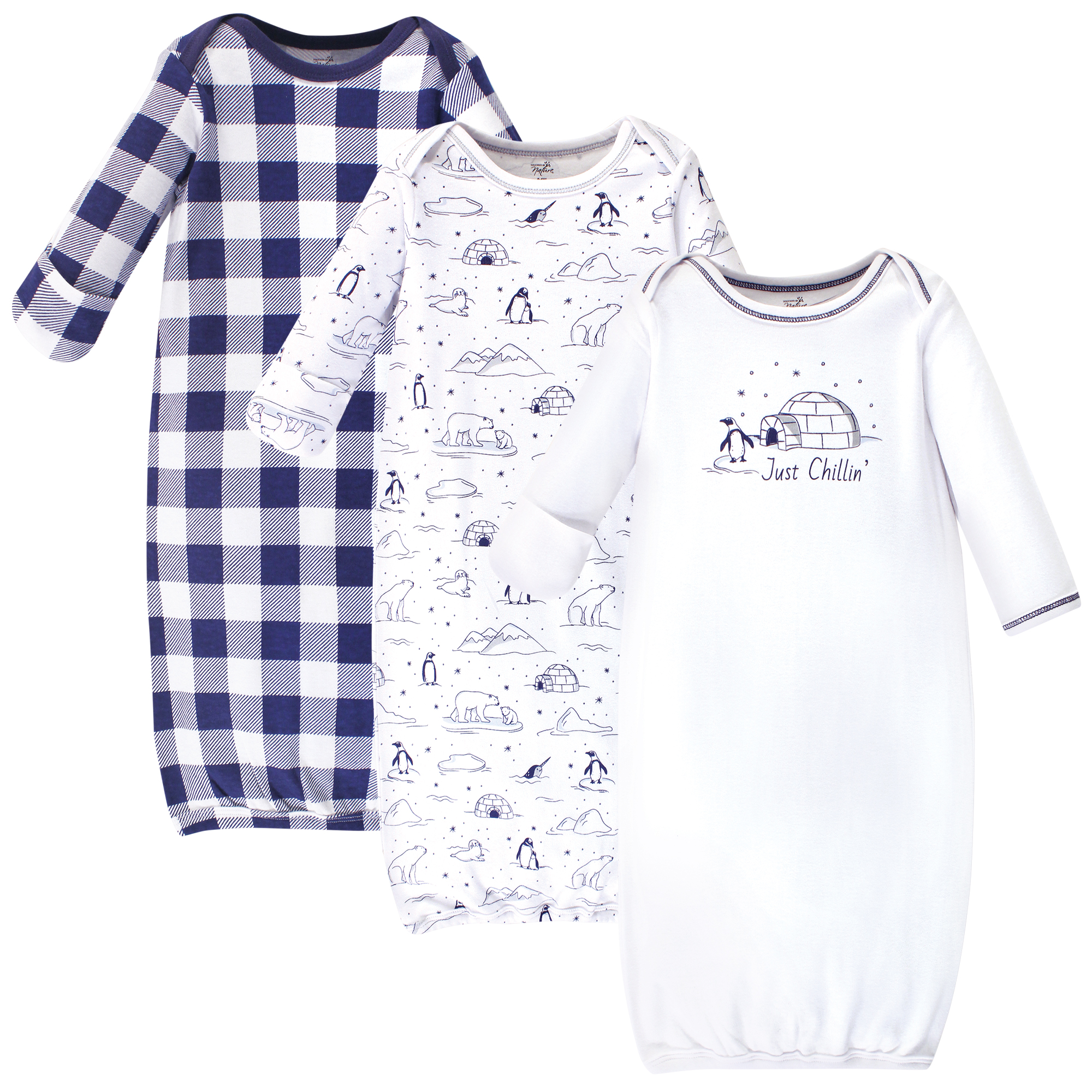 Touched by Nature organic cotton gowns feature playful patterns for sweet dreams. Our organic fabric is super-soft and gentle on baby's skin, making sleep time cozy and comfortable. The elastic band at the bottom and a lap neck make dressing and diaper changes a breeze. Our preemie gowns are suitable for preemies and newborns from 6 to 9 pounds. Our 0-6 month gowns run a bit larger so they last until your baby turns 6 months old. Our gowns are made of 100% cotton, so some shrinking should be expected. Touched by Nature is an organic cotton brand, focused on developing products made from premium organic cotton fabrics. Organic cotton feels super soft on skin as the fibers are natural and breathable. Organic cotton is made without the use of synthetic pesticides and fertilizers, so it is an environmentally friendly alternative compared to traditional farming methods.