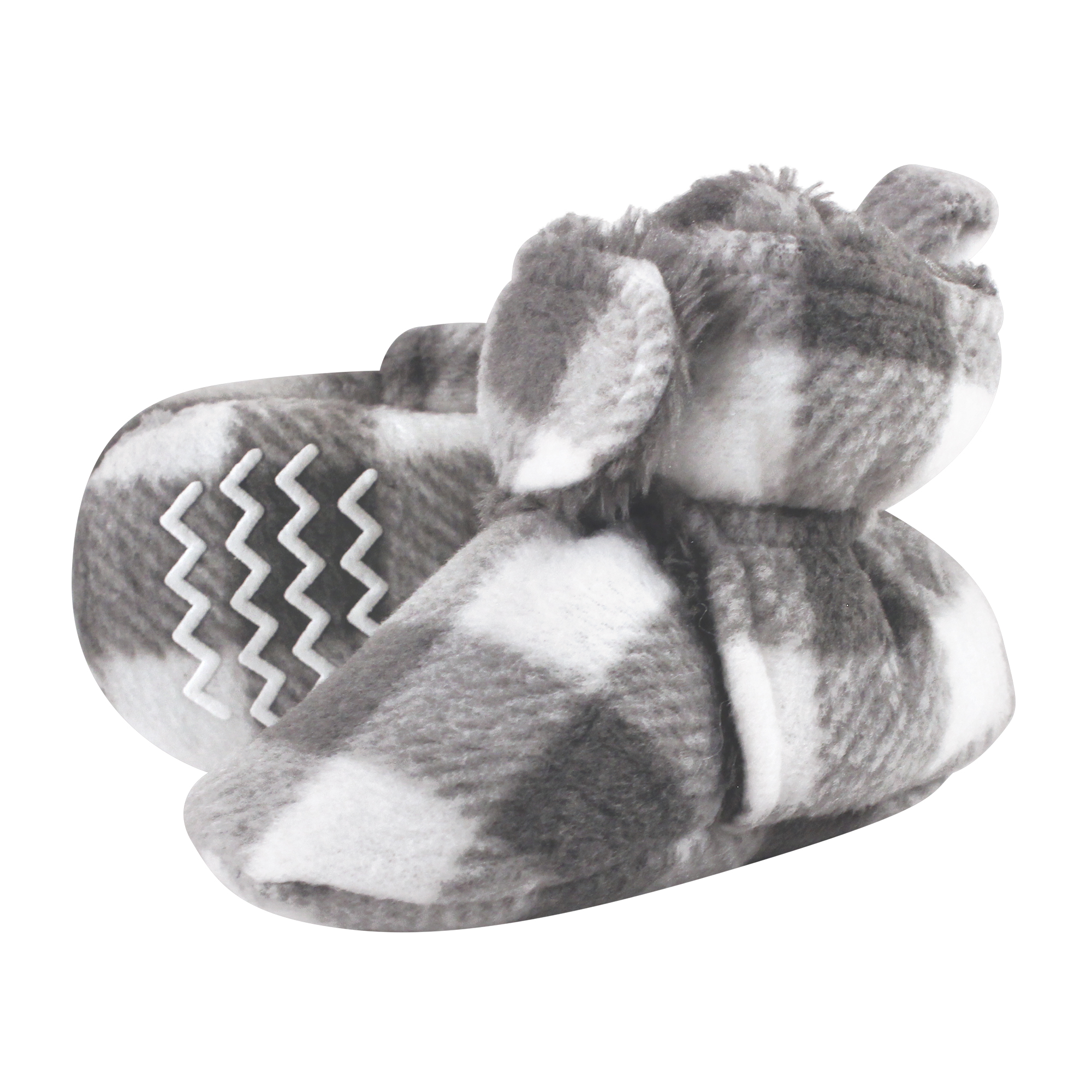 Hudson Baby fleece sherpa booties are comfortable, cozy baby booties made with fleece/sherpa material that will keep your little one's feet warm and comfortable. Our booties wrap around your baby's foot and fasten in the front with a velcro closure, so they are easy to put on, fasten and stay on. Our fleece/sherpa booties feature non-skid soles to prevent your baby from slipping and falling when they start to walk and run.