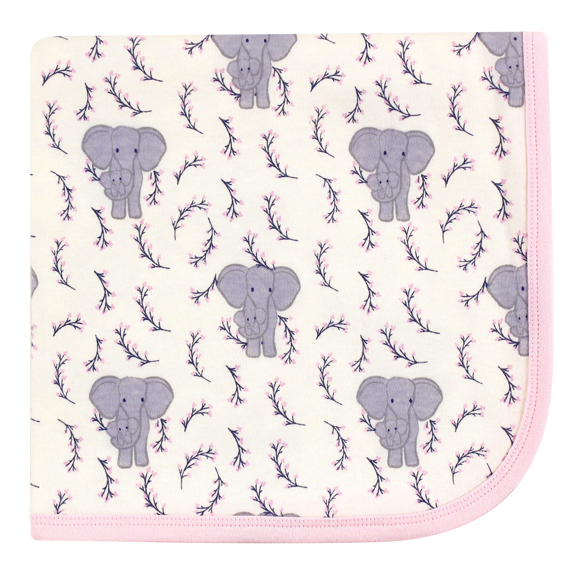 Touched by Nature Organic Cotton Swaddle, Receiving and Multi-purpose Blanket, Pink Elephant
