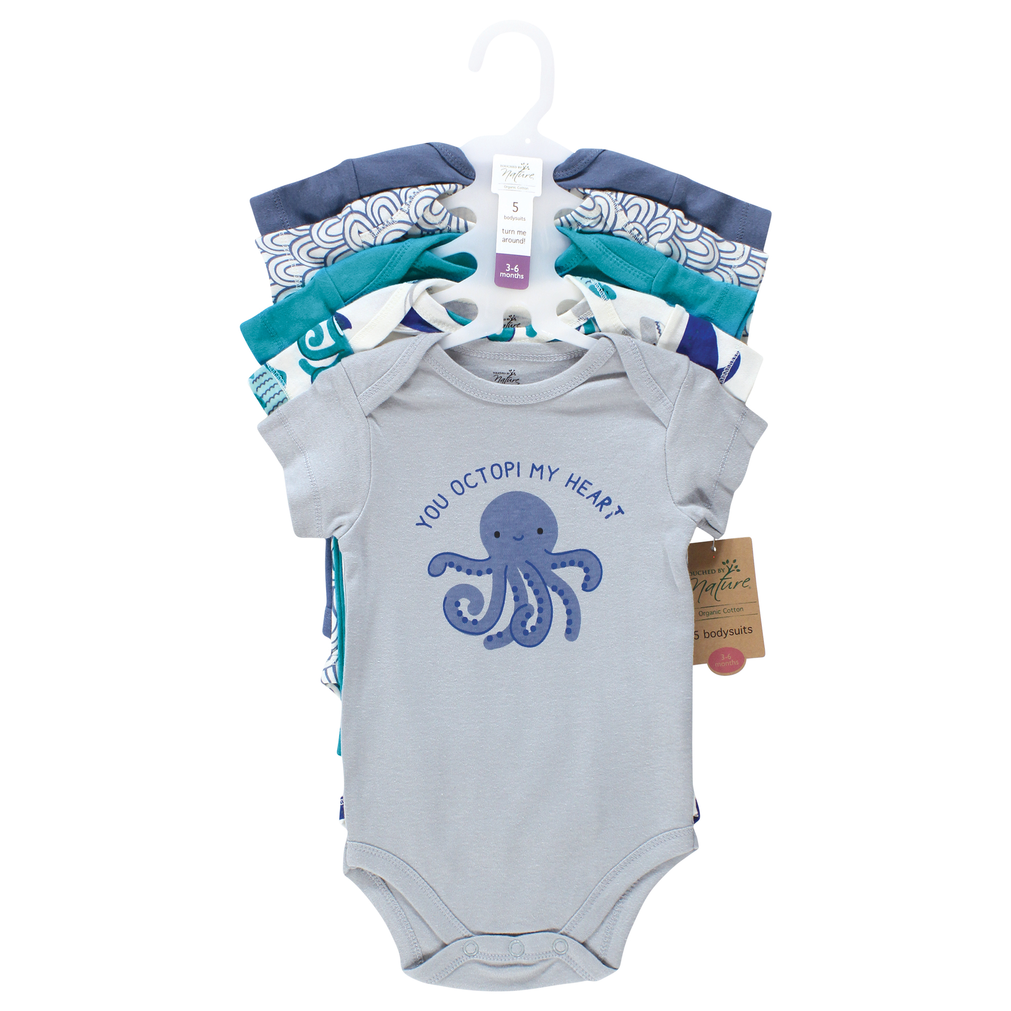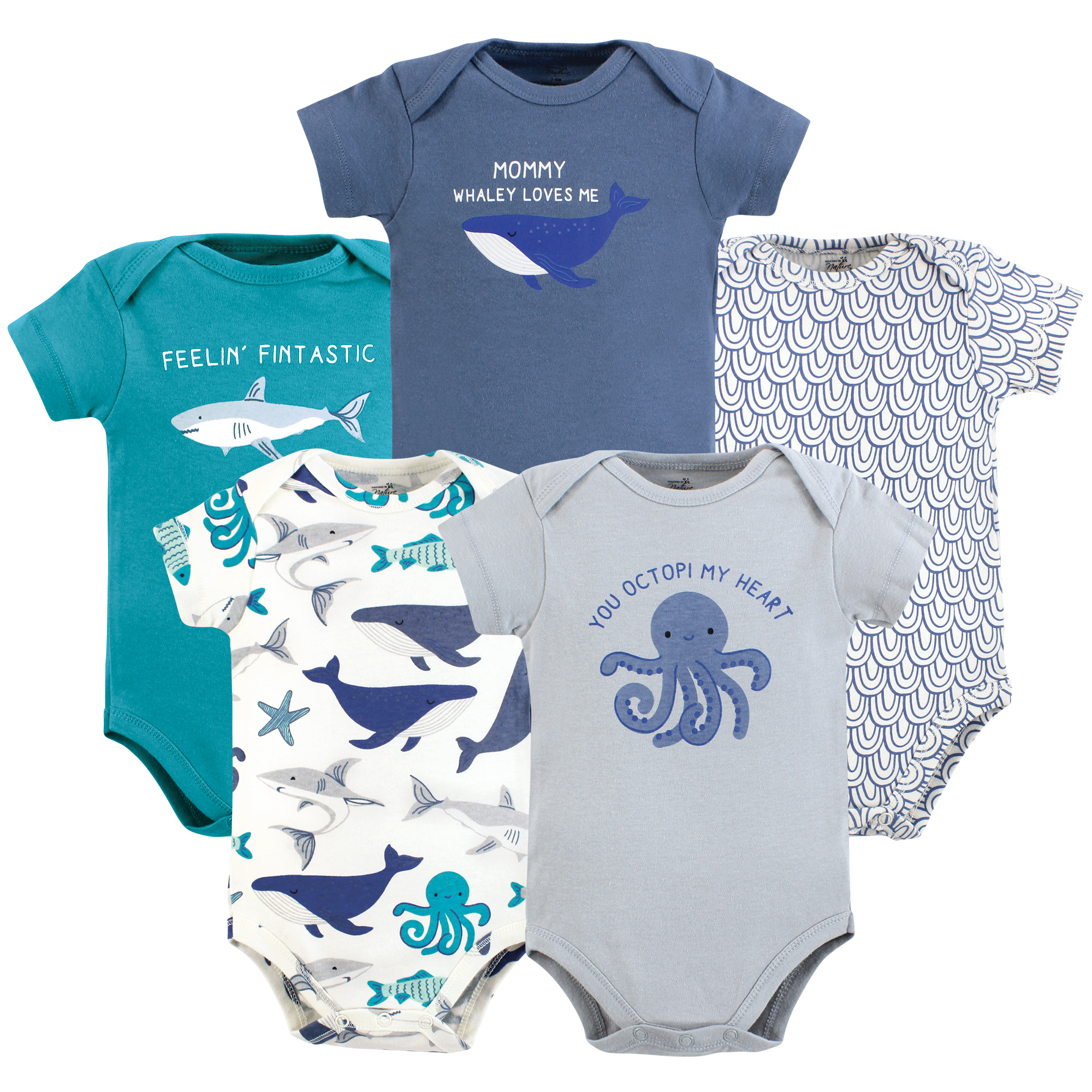 Touched By Nature Organic Cotton Bodysuits, Mystic Sea