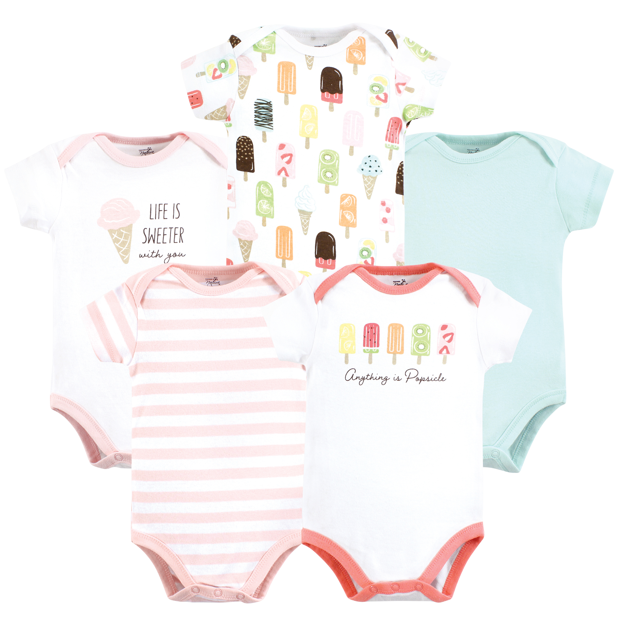 Touched By Nature Organic Cotton Bodysuits, Popsicle