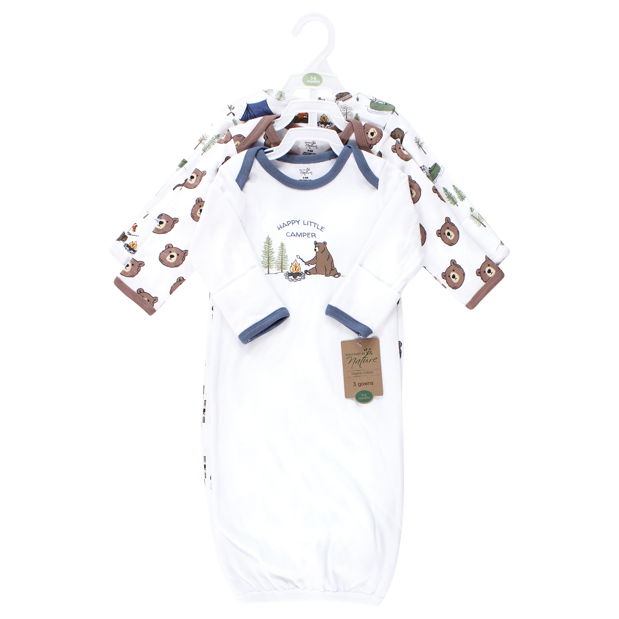 Touched by Nature organic cotton gowns feature playful patterns for sweet dreams. Our organic fabric is super-soft and gentle on baby's skin, making sleep time cozy and comfortable. The elastic band at the bottom and a lap neck make dressing and diaper changes a breeze. Our preemie gowns are suitable for preemies and newborns from 6 to 9 pounds. Our 0-6 month gowns run a bit larger so they last until your baby turns 6 months old. Our gowns are made of 100% cotton, so some shrinking should be expected. Touched by Nature is an organic cotton brand, focused on developing products made from premium organic cotton fabrics. Organic cotton feels super soft on skin as the fibers are natural and breathable. Organic cotton is made without the use of synthetic pesticides and fertilizers, so it is an environmentally friendly alternative compared to traditional farming methods.