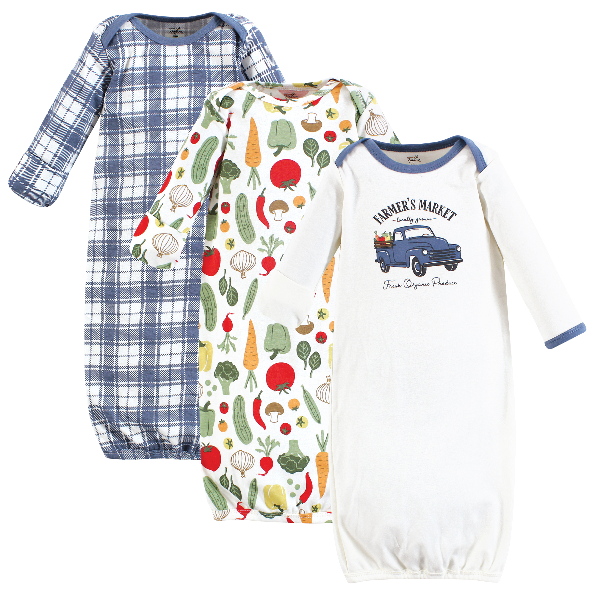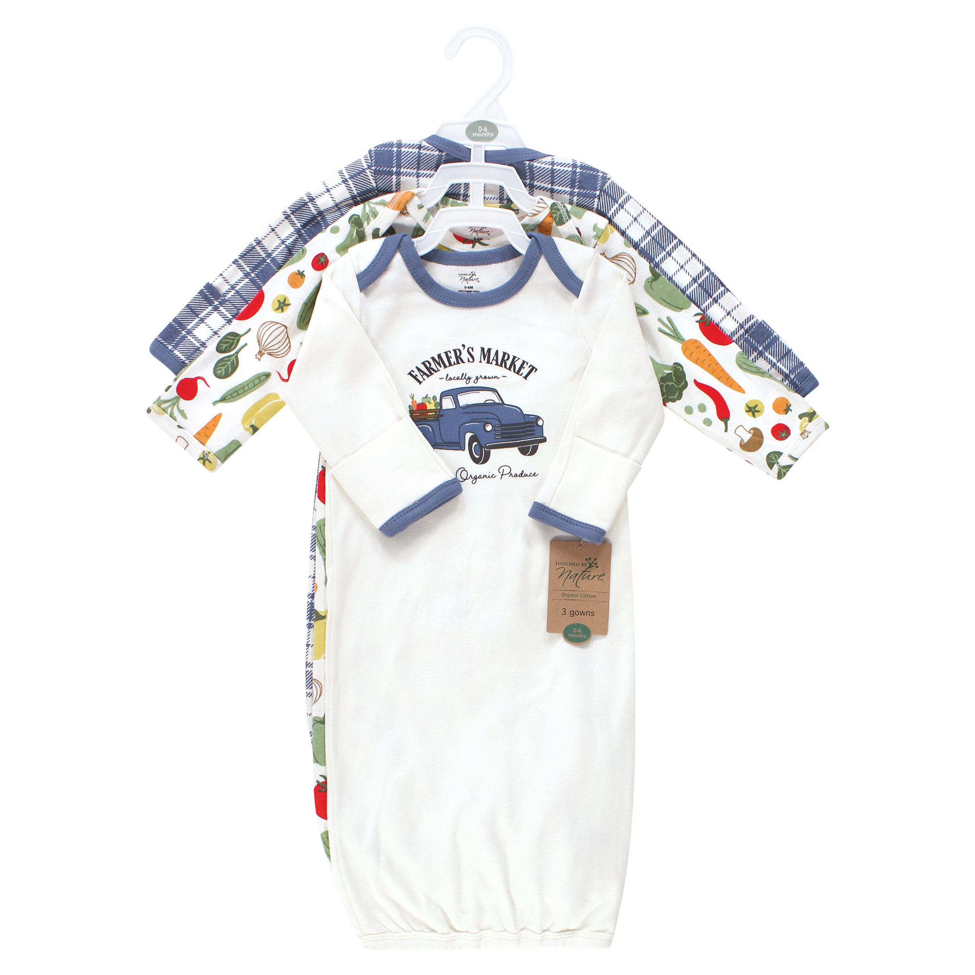 Touched by Nature organic cotton gowns feature playful patterns for sweet dreams. Our organic fabric is super-soft and gentle on baby's skin, making sleep time cozy and comfortable. The elastic band at the bottom and a lap neck make dressing and diaper changes a breeze. Our preemie gowns are suitable for preemies and newborns from 6 to 9 pounds. Our 0-6 month gowns run a bit larger so they last until your baby turns 6 months old. Our gowns are made of 100% cotton, so some shrinking should be expected. Touched by Nature is an organic cotton brand, focused on developing products made from premium organic cotton fabrics. Organic cotton feels super soft on skin as the fibers are natural and breathable. Organic cotton is made without the use of synthetic pesticides and fertilizers, so it is an environmentally friendly alternative compared to traditional farming methods.