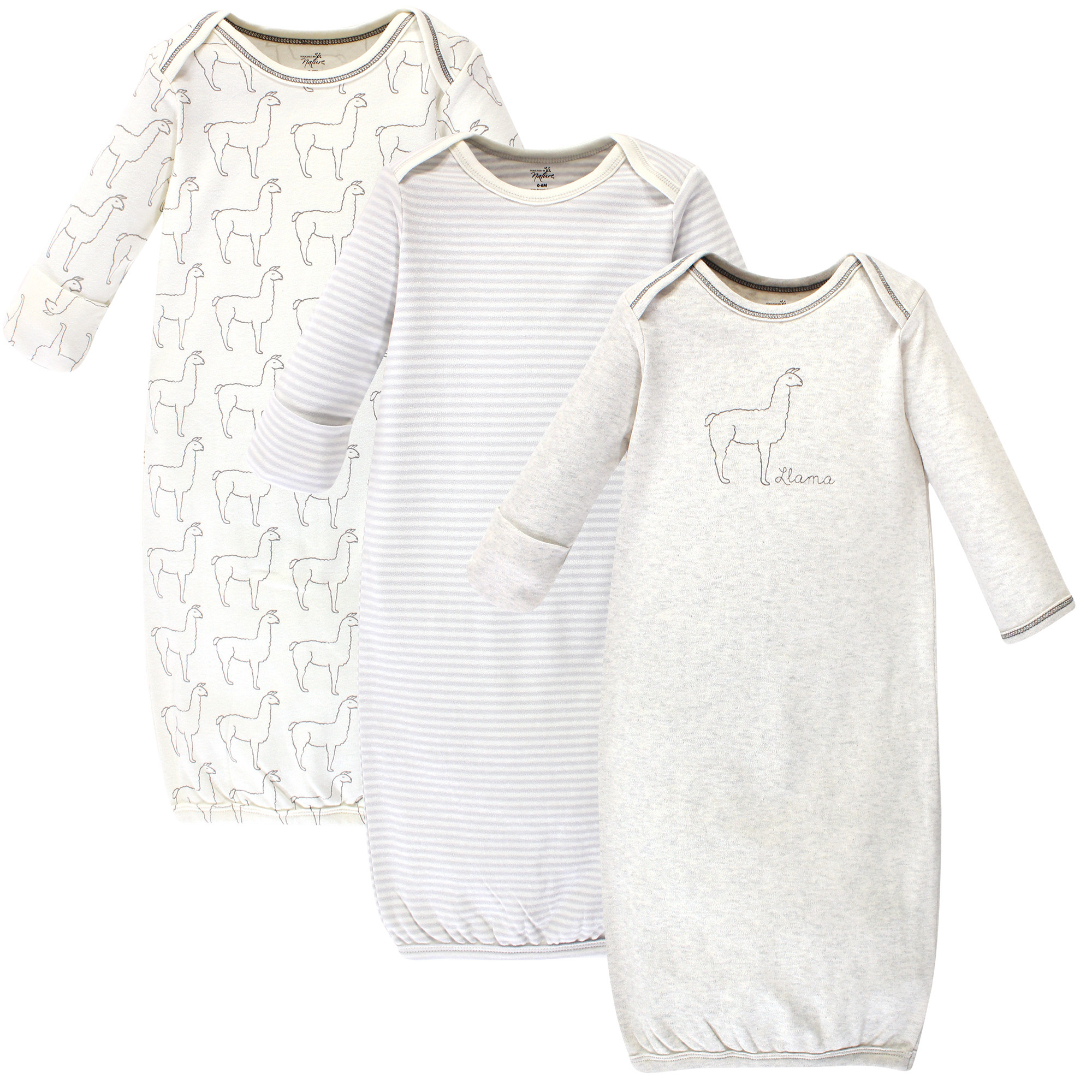Touched by Nature organic cotton gowns feature playful patterns for sweet dreams. Our organic fabric is super-soft and gentle on baby's skin, making sleep time cozy and comfortable. The elastic band at the bottom and a lap neck make dressing and diaper changes a breeze. Our preemie gowns are suitable for preemies and newborns from 6 to 9 pounds. Our 0-6 month gowns run a bit larger so they last until your baby turns 6 months old. Our gowns are made of 100% cotton, so some shrinking should be expected. Touched by Nature is an organic cotton brand, focused on developing products made from premium organic cotton fabrics. Organic cotton feels super soft on skin as the fibers are natural and breathable. Organic cotton is made without the use of synthetic pesticides and fertilizers, so it is an environmentally friendly alternative compared to traditional farming methods.