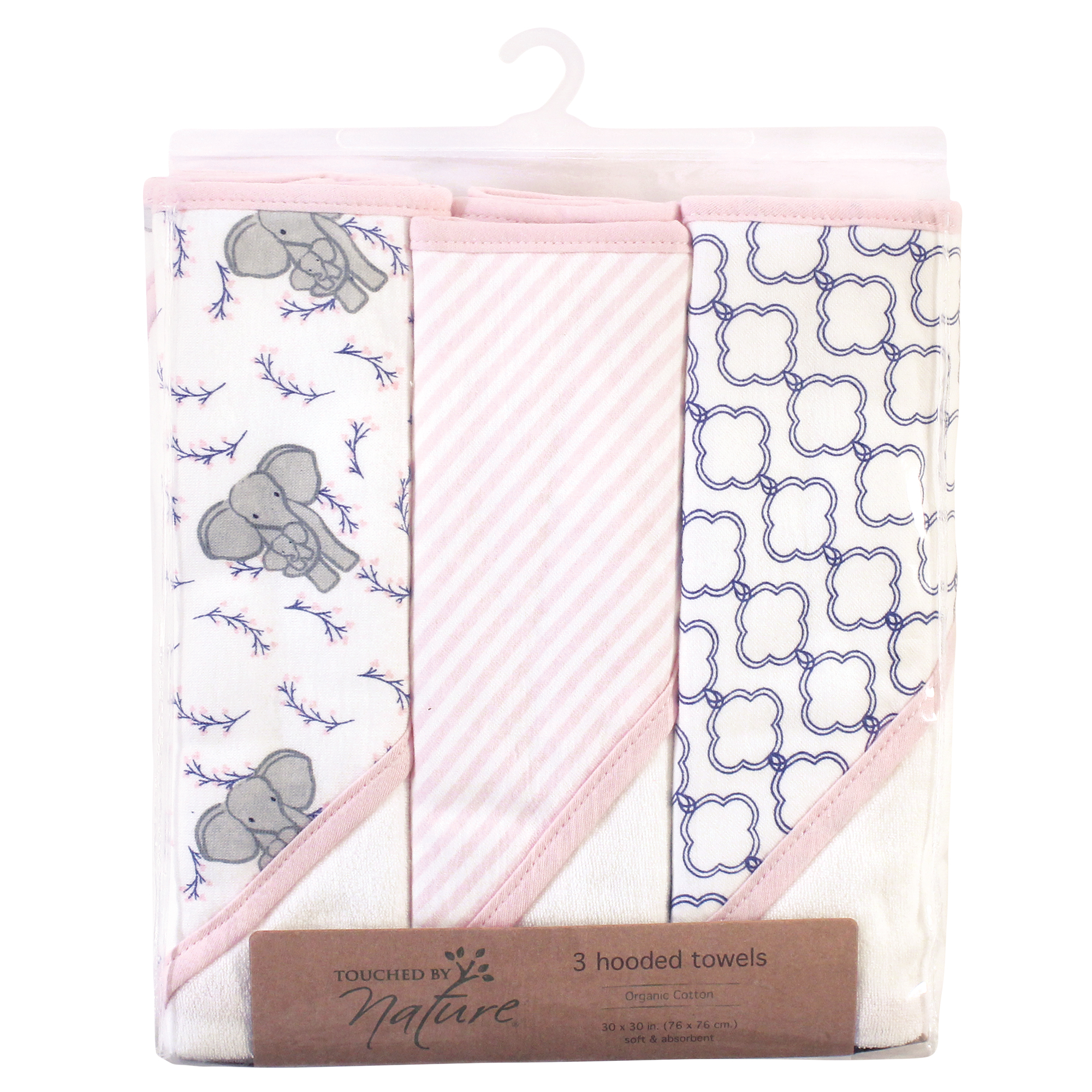 Touched by Nature organic cotton hooded towels feature three hooded towels made of 100% organic cotton. Our organic cotton fabric is soft, comfortable and cozy for your little one after bath time. Our prints and patterns will make your little one's bath time fun and colorful. Touched by Nature is an organic cotton brand, focused on developing products made from premium organic cotton fabrics. Organic cotton feels super soft on skin as the fibers are natural and breathable. Organic cotton is made without the use of synthetic pesticides and fertilizers, so it is an environmentally friendly alternative compared to traditional farming methods.