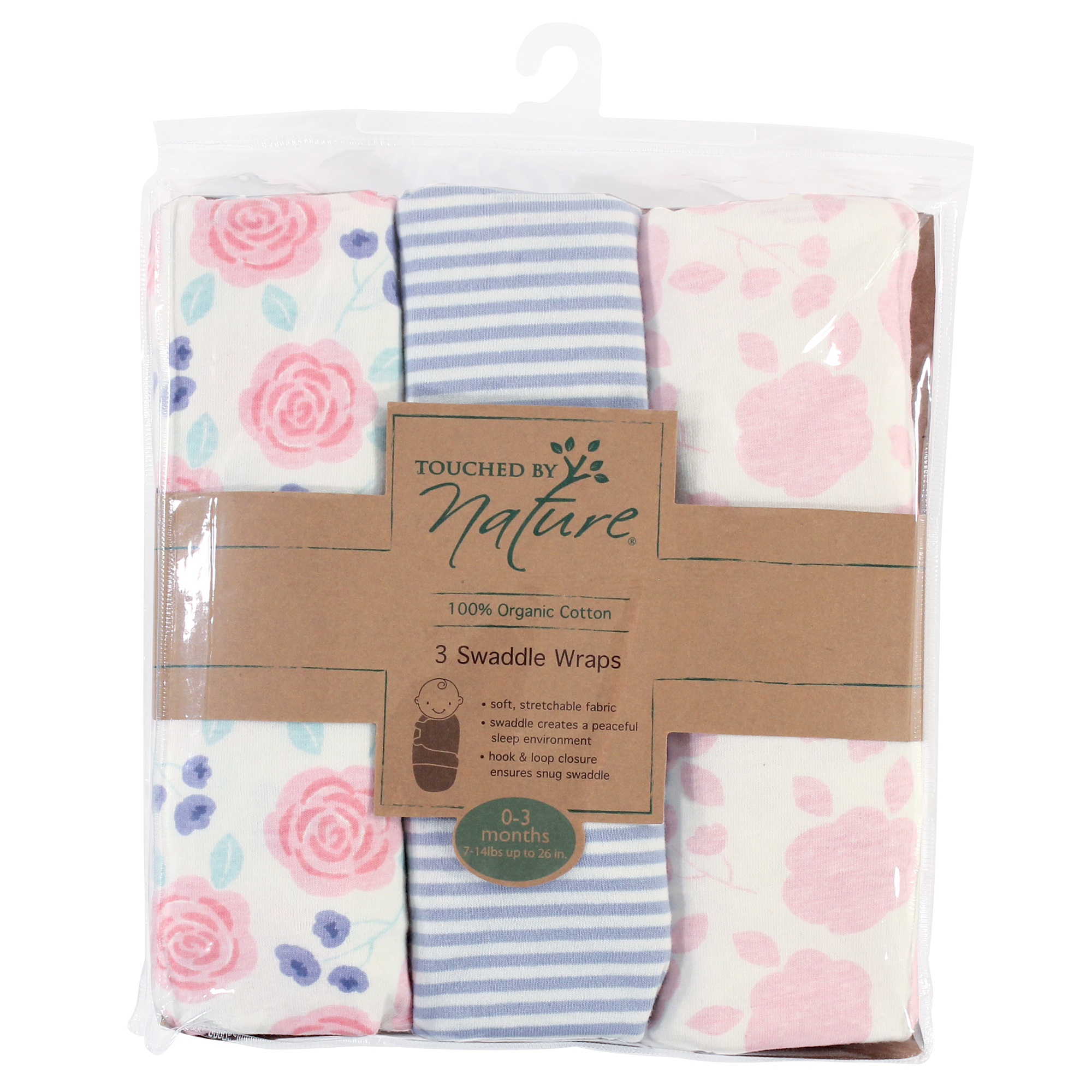 Touched by Nature swaddle wraps are the perfect swaddles to keep your baby comfortable, cozy and snug through the night. Our swaddles feature hook and loop closures for arms to be swaddled snug to body so baby feels safe and secure at night. Our swaddle wrap provides a safe sleep environment while hips remain loose to avoid hip displaysia. Never use swaddle when baby can roll over. Touched by Nature is an organic cotton brand, focused on developing products made from premium organic cotton fabrics. Organic cotton feels super soft on skin as the fibers are natural and breathable. Organic cotton is made without the use of synthetic pesticides and fertilizers, so it is an environmentally friendly alternative compared to traditional farming methods.
