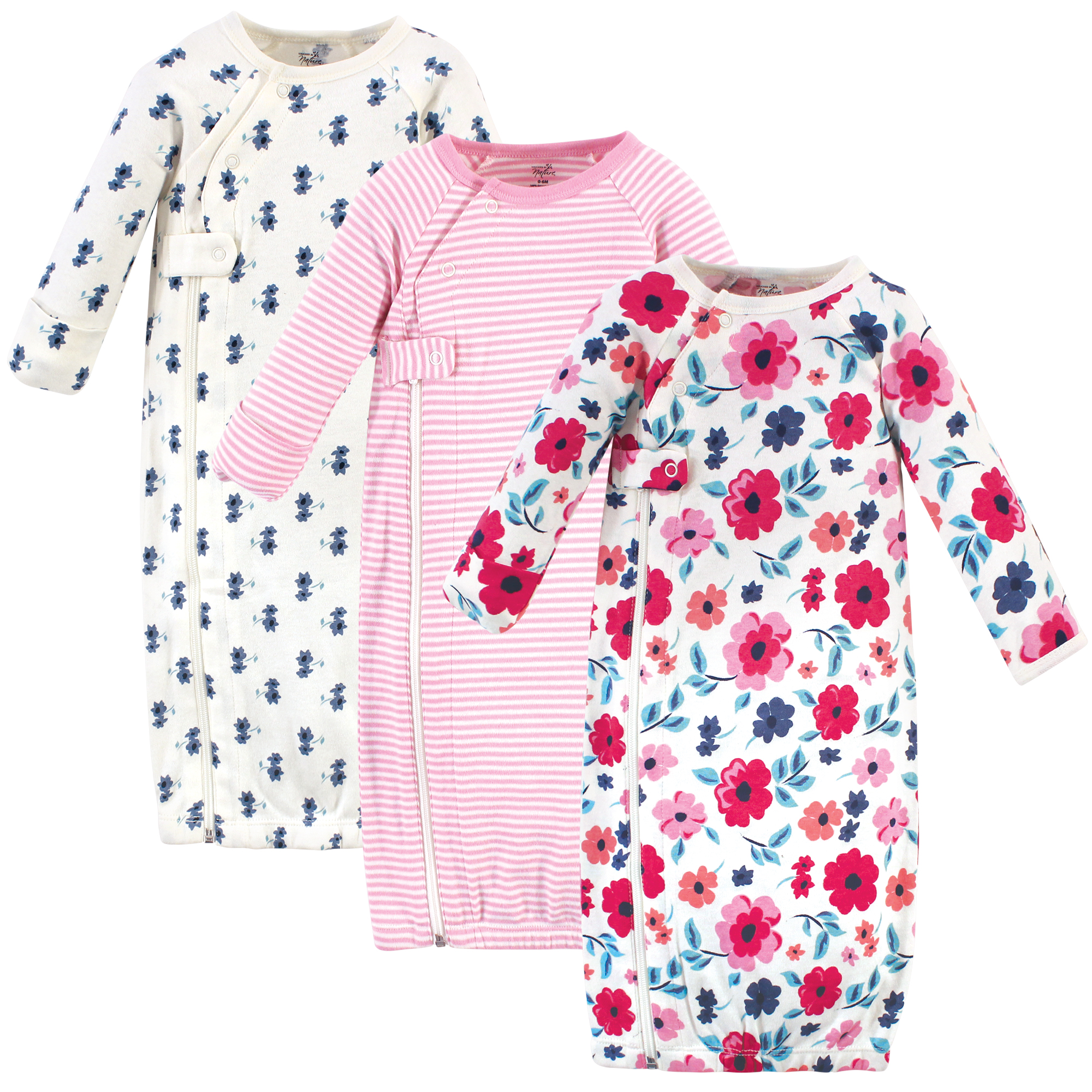 Touched by Nature organic cotton zipper gowns feature playful patterns for sweet dreams. Our organic fabric is super-soft and gentle on baby's skin, making sleep time cozy and comfortable. The zipper makes for easy on and easy off, the elastic band at the bottom and a lap neck make dressing and diaper changes a breeze. Our preemie gowns are suitable for preemies and newborns from 6 to 9 pounds. Our 0-6 month gowns run a bit larger so they can last you up until your baby turns 6 months old. Our gowns are made of 100% cotton, so some shrinking should be expected. Touched by Nature is an organic cotton brand, focused on developing products made from premium organic cotton fabrics. Organic cotton feels super soft on skin as the fibers are natural and breathable. Organic cotton is made without the use of synthetic pesticides and fertilizers, so it is an environmentally friendly alternative compared to traditional farming methods.
