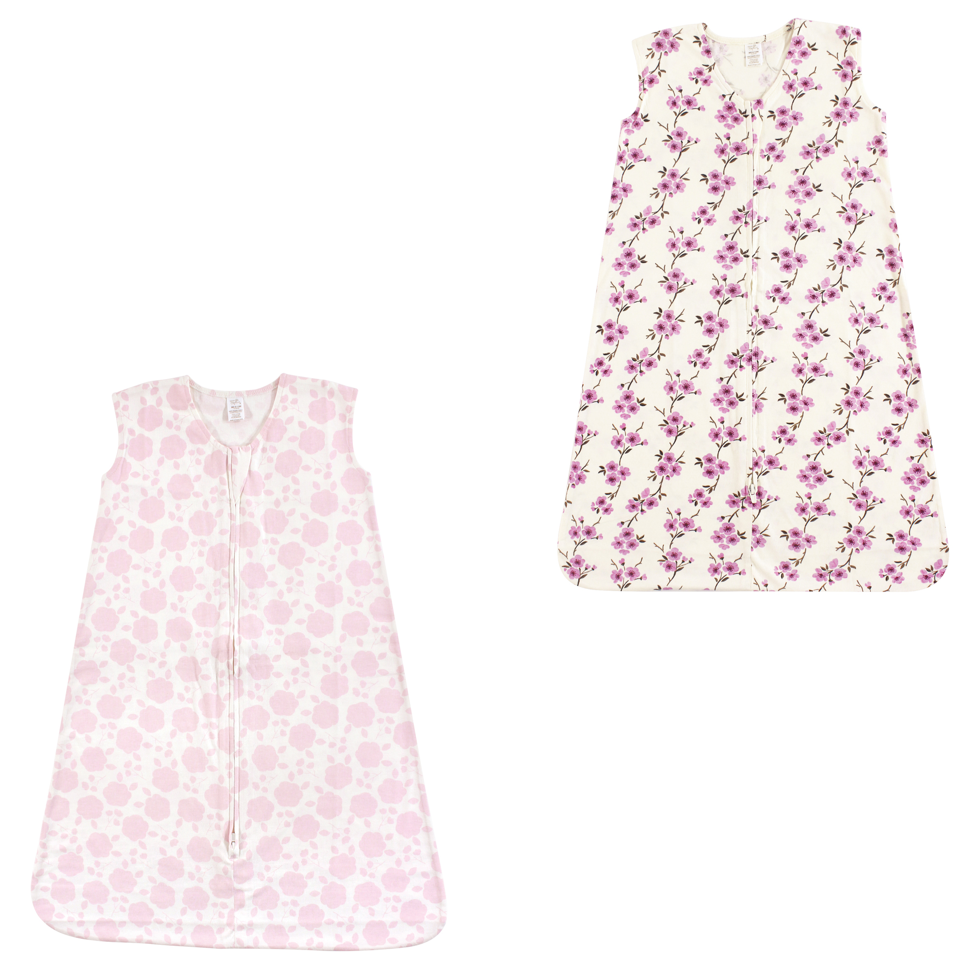 Touched By Nature Organic Cotton Sleeveless Wearable Sleeping Bag, Sack, Blanket, Cherry Blossom And Floral Shadow 2-Pack