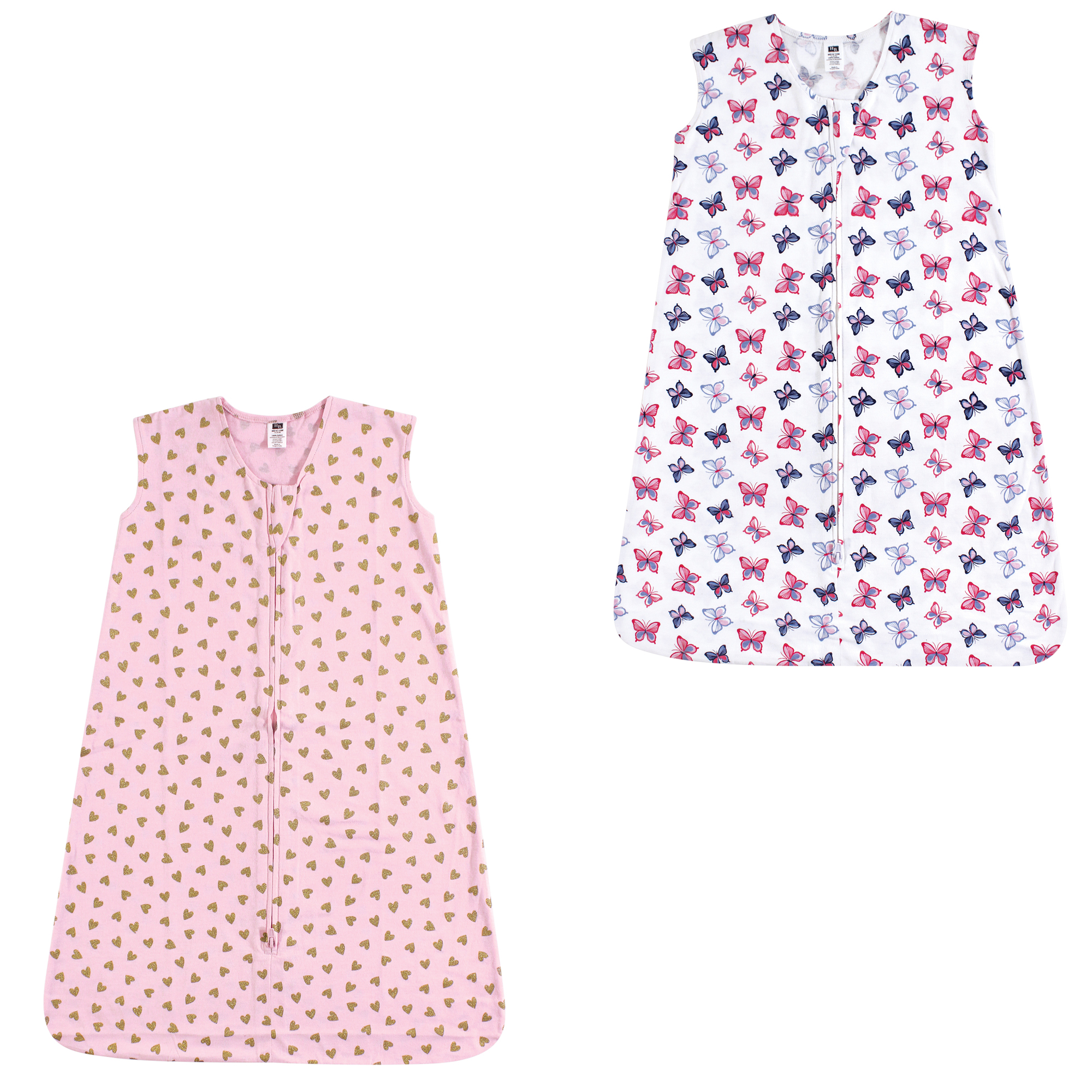Hudson Baby Cotton Sleeveless Wearable Sleeping Bag, Sack, Blanket, Gold Hearts And Butterflies 2-Pack