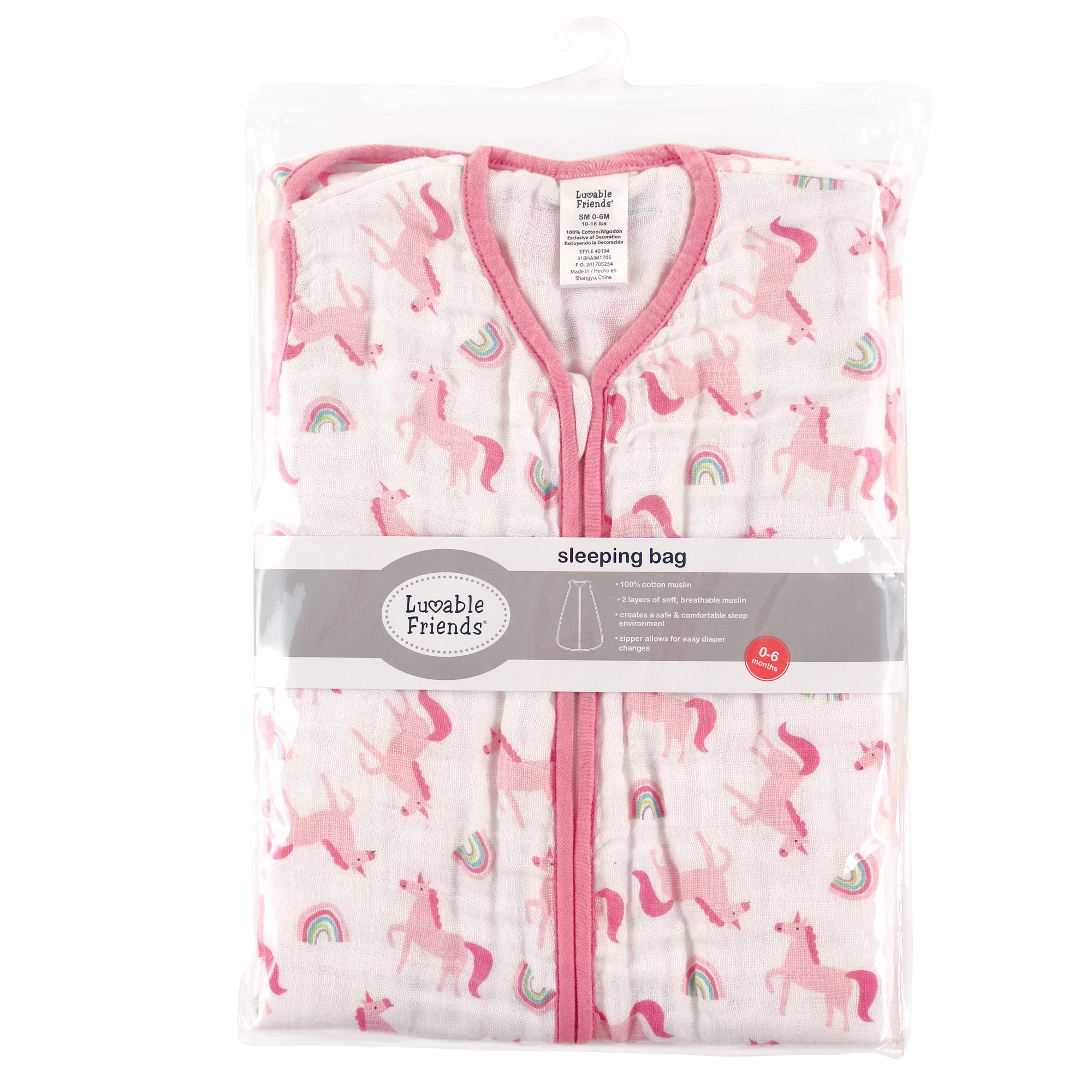 Luvable Friends premium muslin sleeping bag and wearable blanket is the perfect safe sleep blanket for your little one to have a warm, cozy, comfortable and safe night of sleep. Our sleeping bag is sleeveless and has an inverted zipper for easy on and off dressing and diaper changes. Our wearable blanket will keep baby warm during the cooler nights with two layers of soft muslin cotton, yet is highly breathable with muslin fabric.
