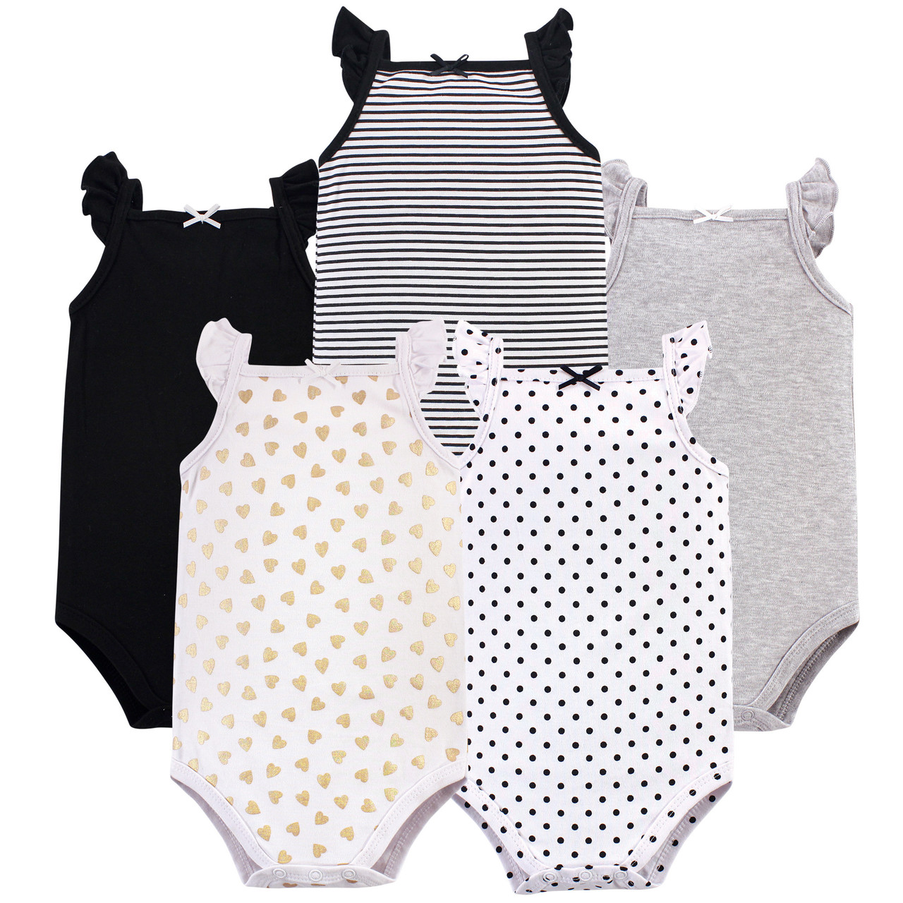 Hudson Baby Cotton Sleeveless Bodysuits, Basic Black Gold