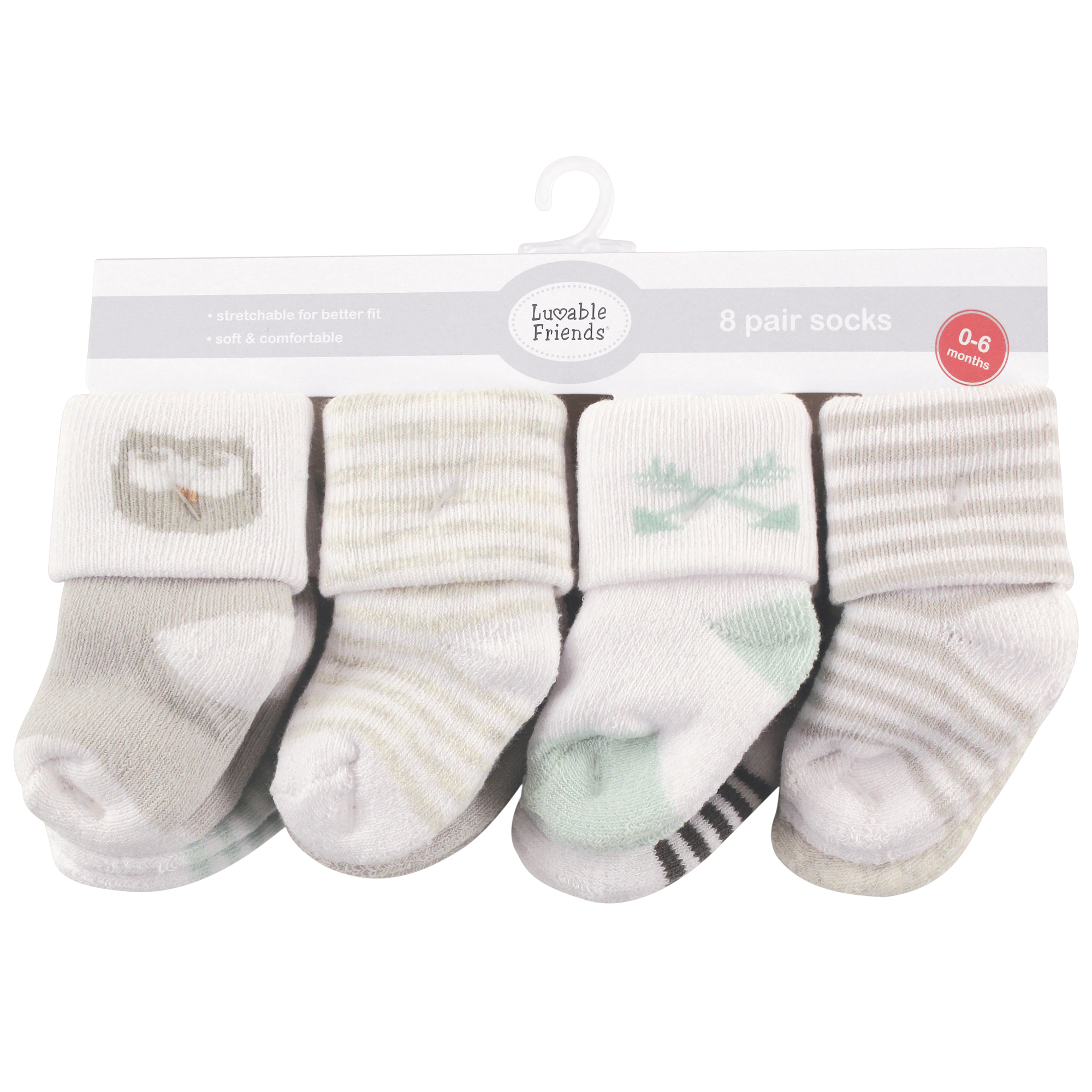 Luvable Friends newborn and baby terry socks are comfortable, cozy and trendy baby socks that belong on every little one's tiny feet! Our socks are ideal for everyday wear with soft fabric that is comfortable on your baby's feet. Our stretchable design makes for proper fit and no fuss dressing and are available in sizes from 0 to 12 months. Made of a super soft cotton rich blend, our socks are safe and gentle on baby's little toes and but durable and machine washable for everyday use. Our value pack of socks are a perfect set of essentials in one easy to purchase set.