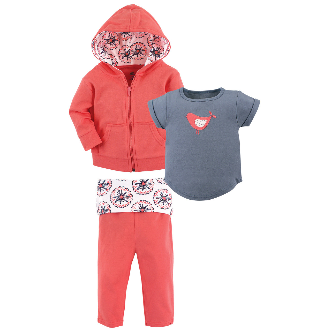 Yoga Sprout features fun, comfortable athletic wear with vibrant colors and playful patterns. This adorable hoodie/jacket, bodysuit or tee top and pant set features soft, stretchable, 100 percent cotton fabric that is sure to keep up with your active little sprout. Girl's pants are made of 92% Cotton and 8% Spandex. From happy baby pose to every day adventures, grow, relax and be happy, with Yoga Sprout