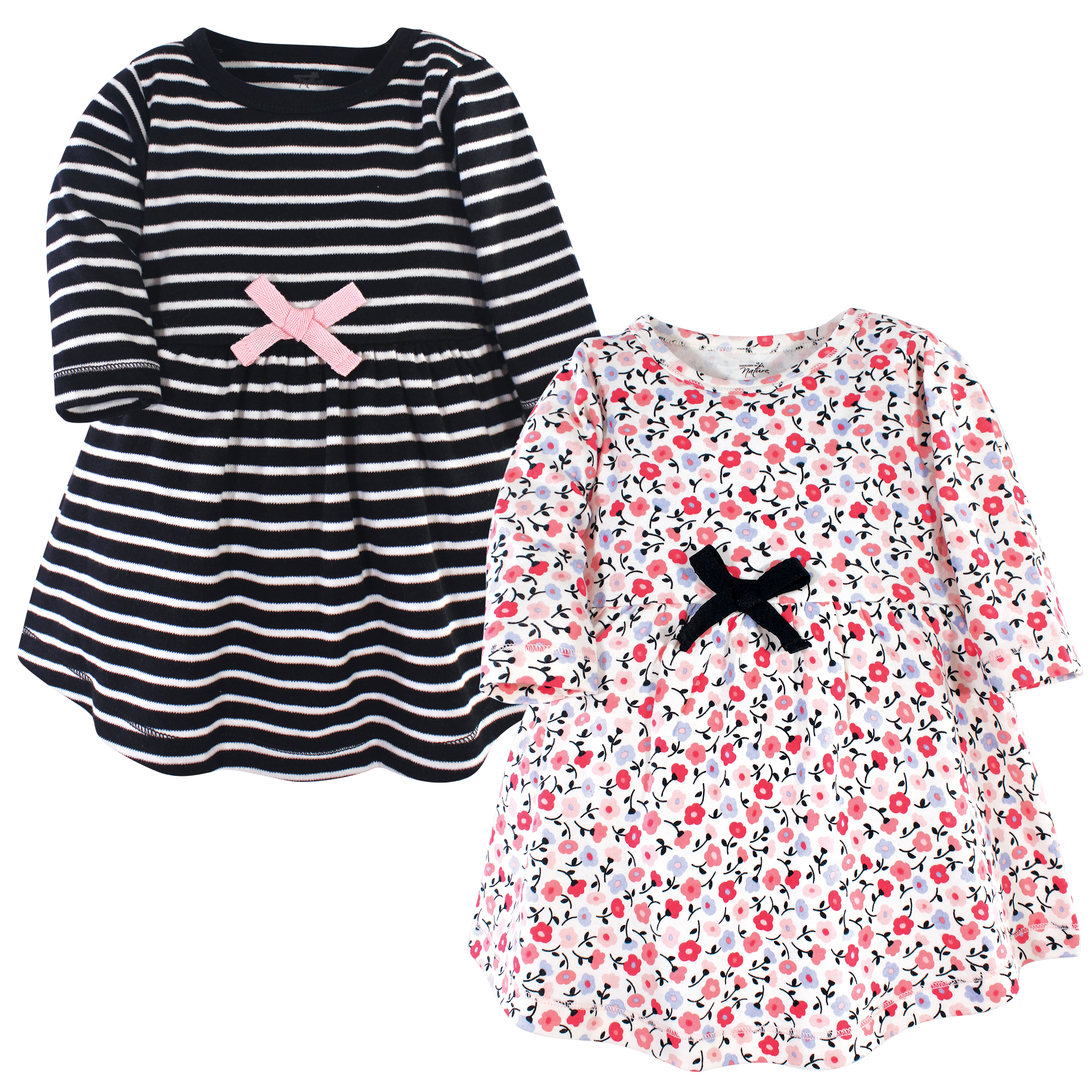 Touched By Nature Toddler Long Sleeve Organic Dress 2-Pack, Ditsy Floral