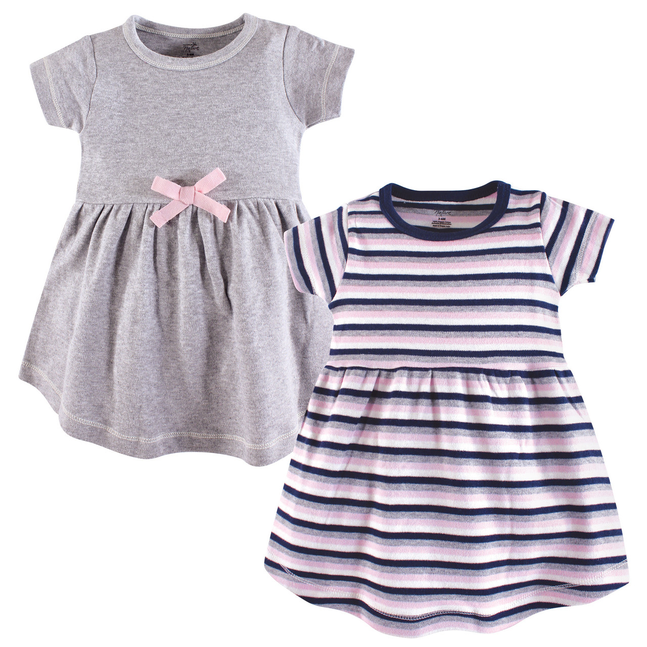 Touched by Nature is a 100 percent organic baby clothing brand made of premium organic cotton fabric and features beautifully designed clothing, bibs, blankets, hair accessories and socks. Organic cotton feels super soft on baby's skin as the fibers are natural and breathable. Organic cotton is made without the use of synthetic pesticides and fertilizers, so it is an environmentally-friendly alternative compared to traditional farming methods. Touched by Nature organic cotton dress 2-pack is made of 100 percent organic interlock cotton (exclusive of decoration) and the perfect outfit for your little girl. Featuring adorable prints and stripes, our dresses are perfect outfits for special occasions because they are fashionable and comfortable for baby to wear. Our dresses are made of premium fabrics and the most convenient construction for easy on and easy off. Make dress time more fun with Touched by Nature dresses