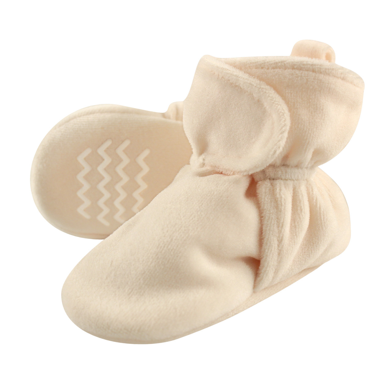 Hudson Baby Velour Scooties with Non Skid Bottom are a great way to keep your baby's little tootsies warm in the colder months! With hook and loop closure around the ankle, these Scooties cannot be kicked off! These are so warm, cozy and velvety around baby's feet and can be worn with or without socks! These Scooties feature a zig-zag pattern rubber grip on the bottom to ensure your little one doesn't slip and slide around.