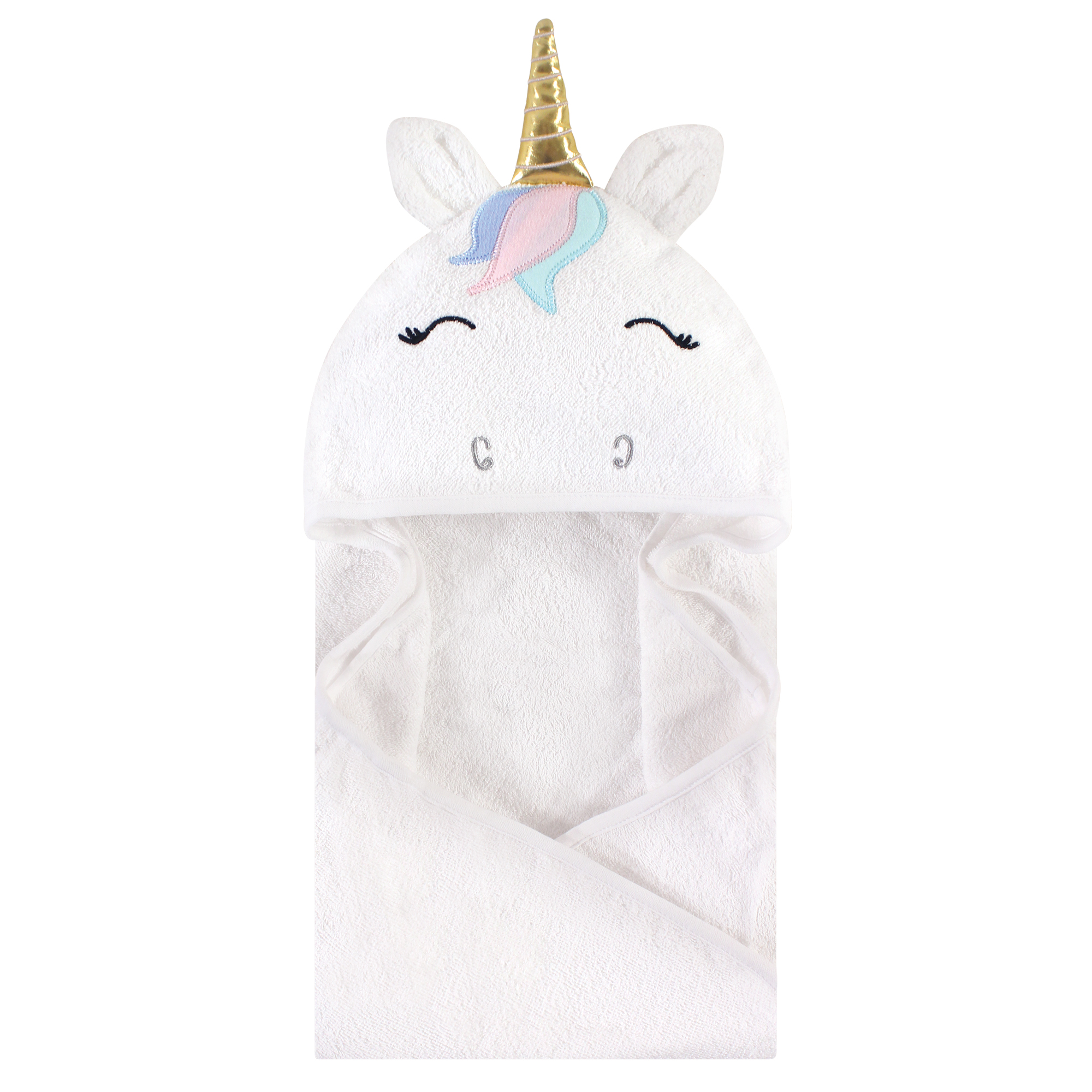 Hudson Baby Cotton Animal Face Hooded Towel, Multicolor Unicorn