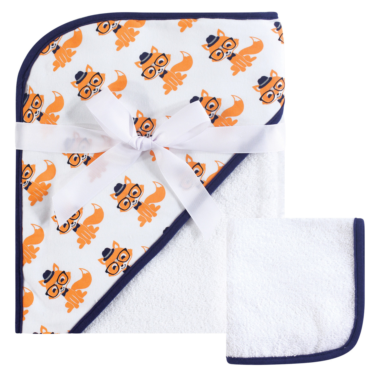 Hudson Baby Cotton Hooded Towel and Washcloth, Nerdy Fox