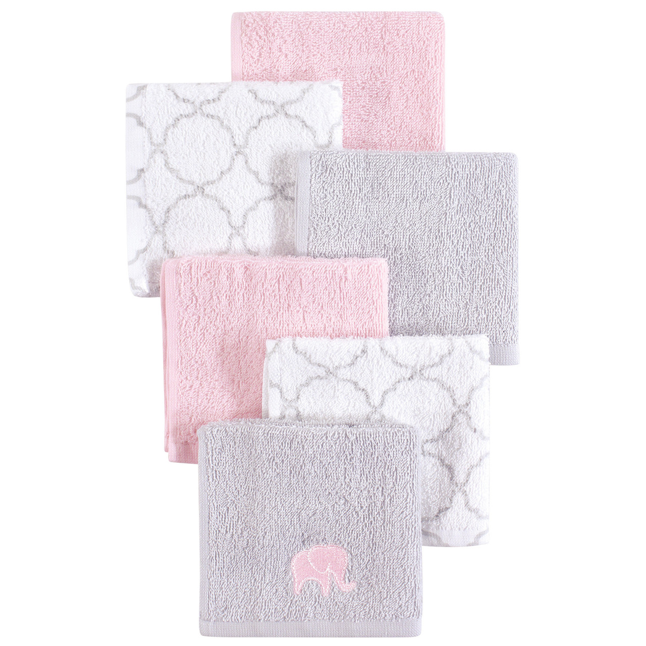 Hudson Baby Super Soft Cotton Washcloths, Pink Elephant